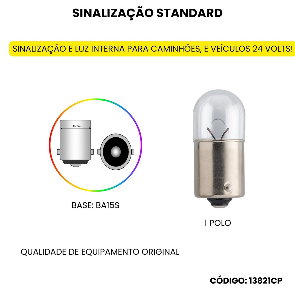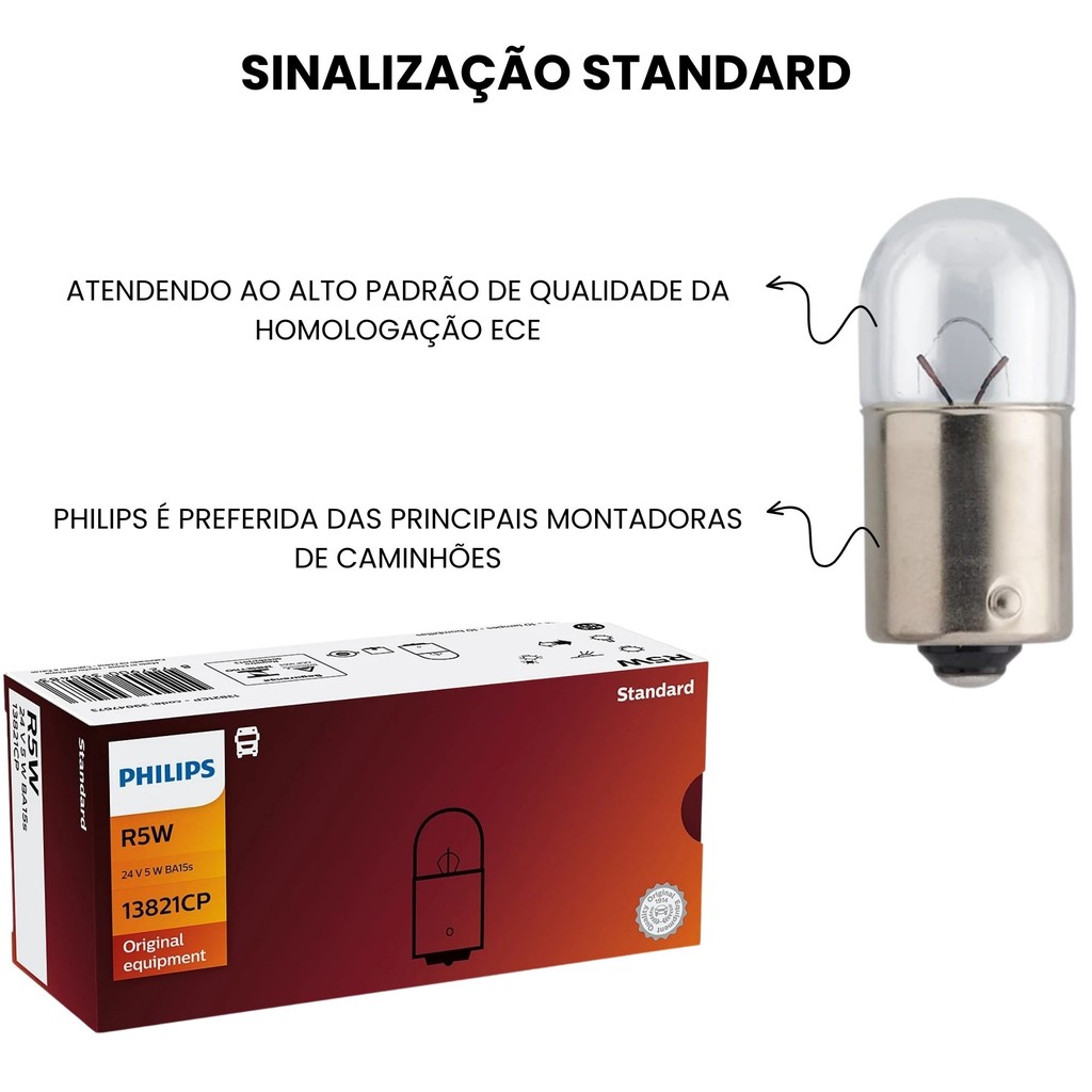 KIT 10 LÂMPADAS PHILIPS R5W CAMINHÃO 24V LUZ DE FREIO SETA PLACA LUZ INTERNA LUZ DE POSIÇÃO