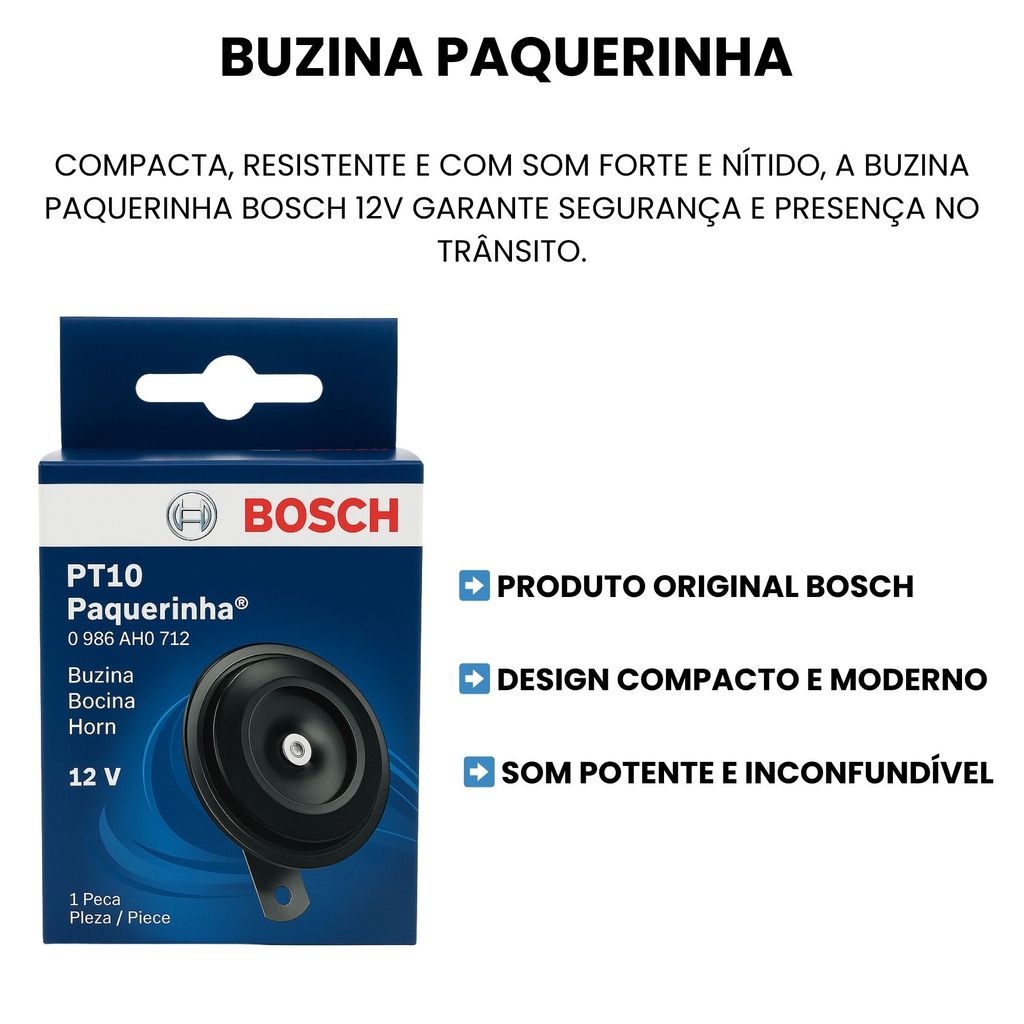 BUZINA MOTO CARRO UNITÁRIA BOSCH MINI PAQUERINHA PT10 12V 420HZ