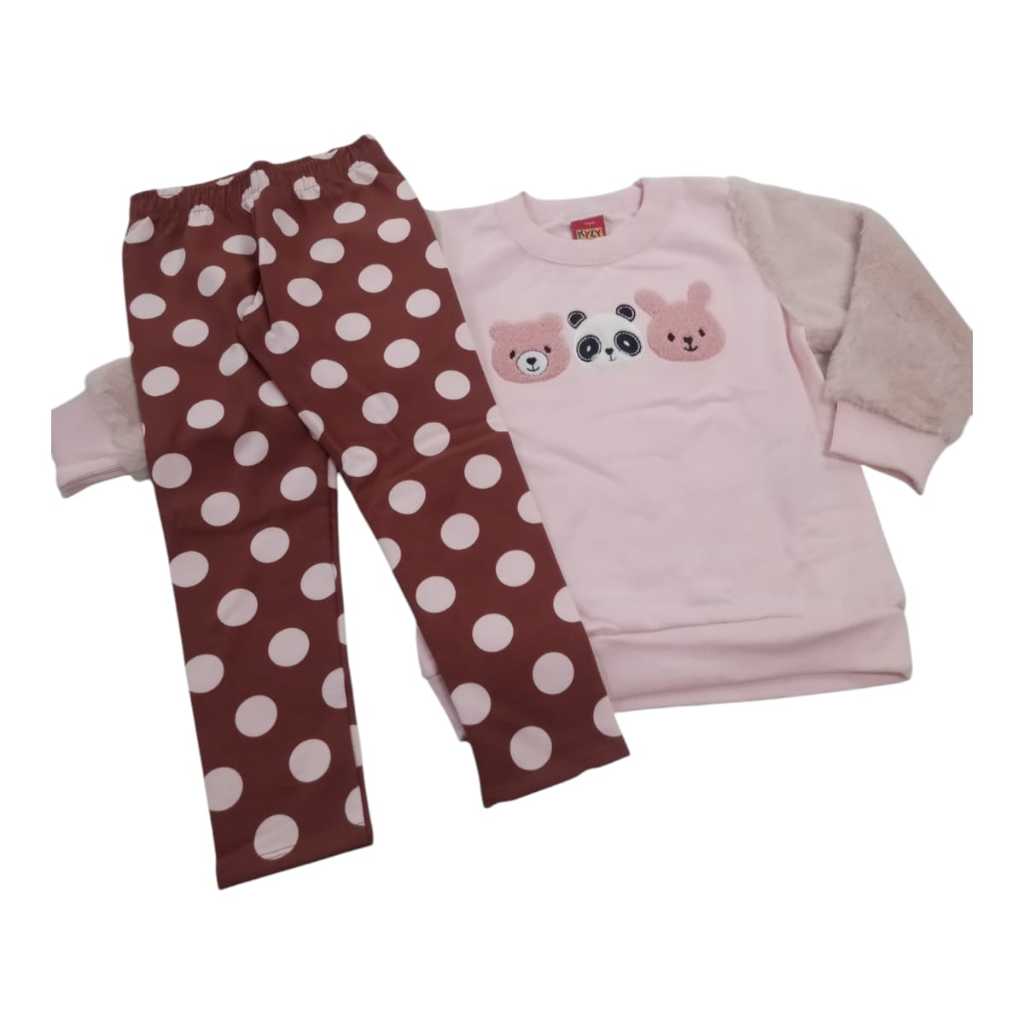 CONJUNTO INFANTIL MENINA MOLETOM FLANELADO CASACO + LEGGING KYLY 1-2-3-4-6-8
