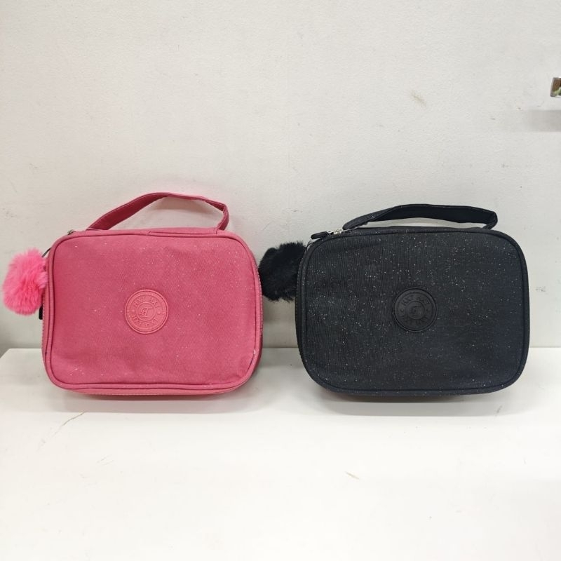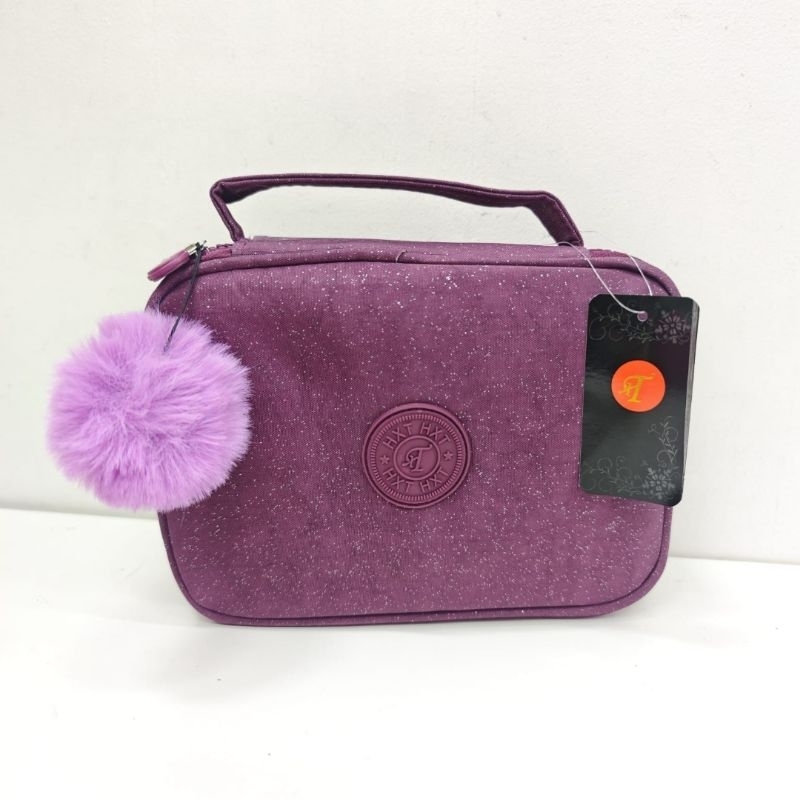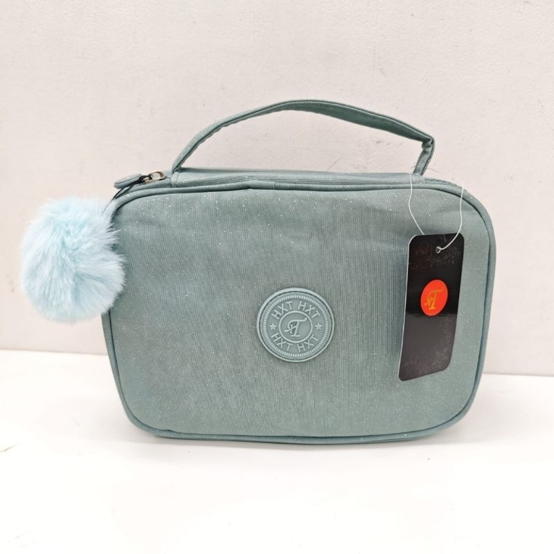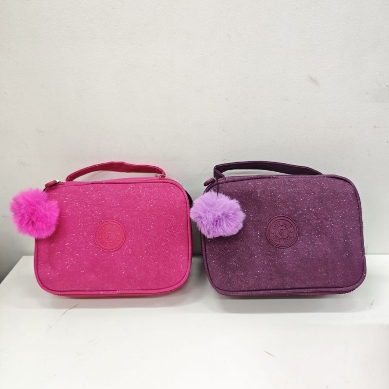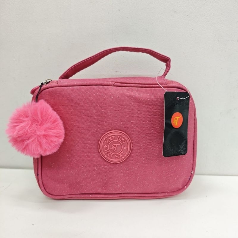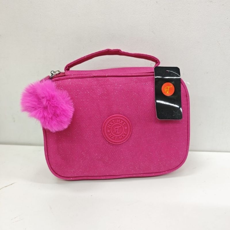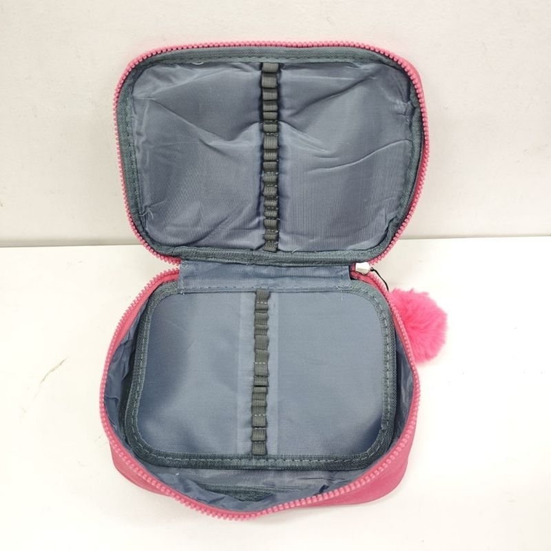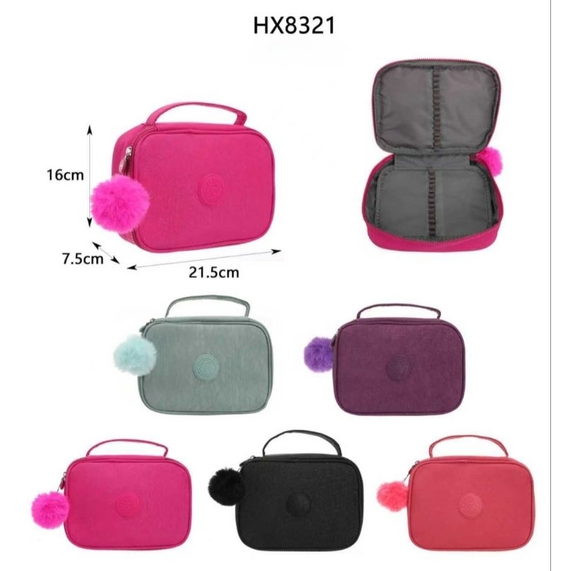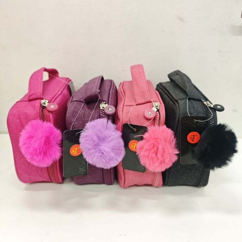 Estojo de Nylon com Alça, Estampa Brilhante com Pompom, Grande Capacidade para Lapis, Canetas 8321