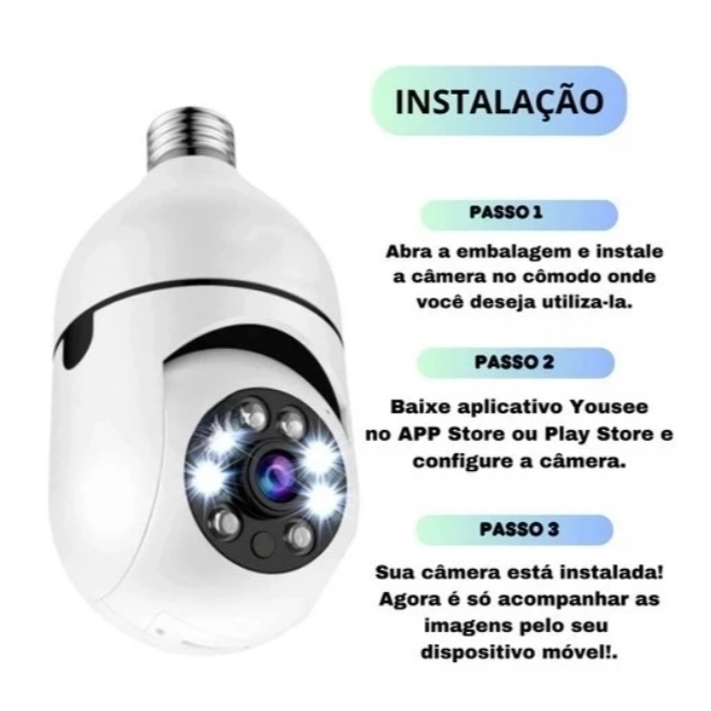 Câmera de segurança a Prova D'água sem fio gira 360 com app Yousee full HD visão noturna