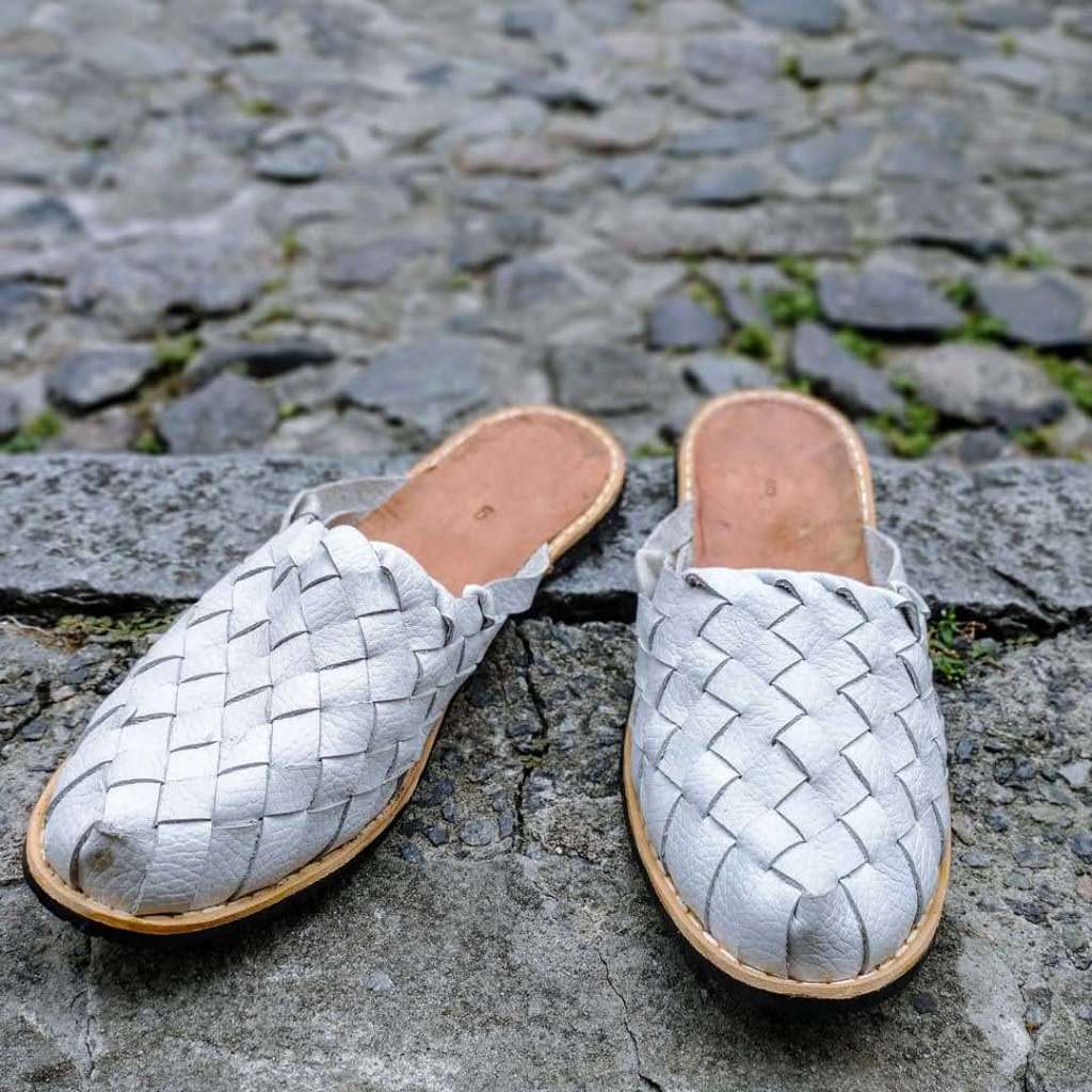 Mule de couro Xagrim Mule em couro Sandalia Mabuche Branco Natural Trançado