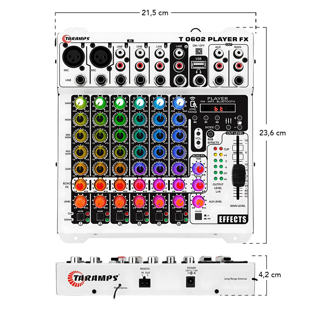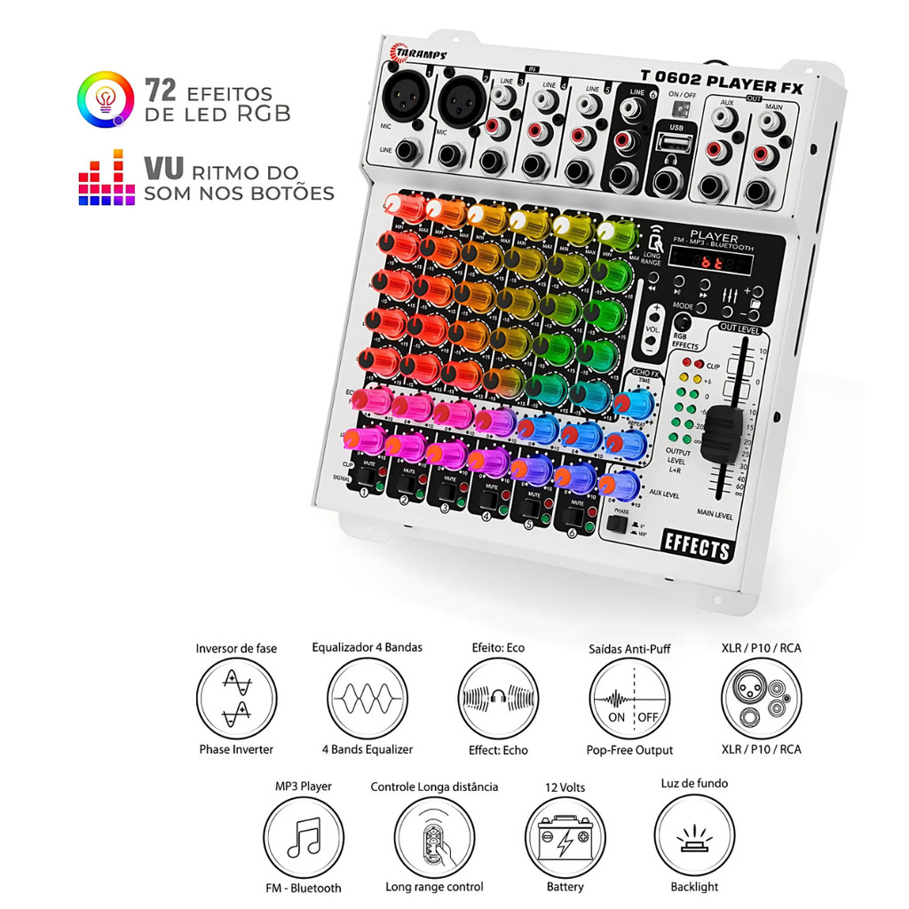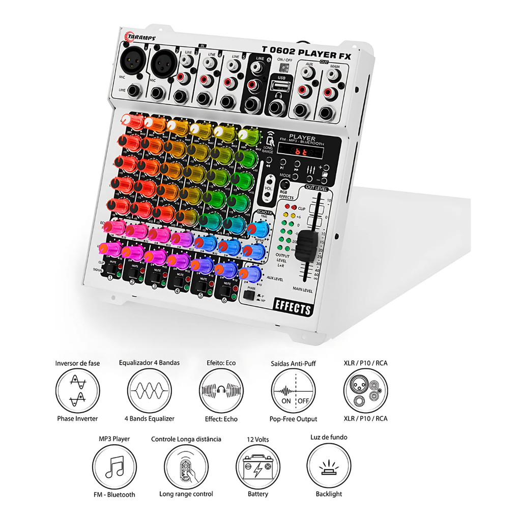 Mesa De Som Taramps 6 Canais Bluetooth Player Fx Multicolor