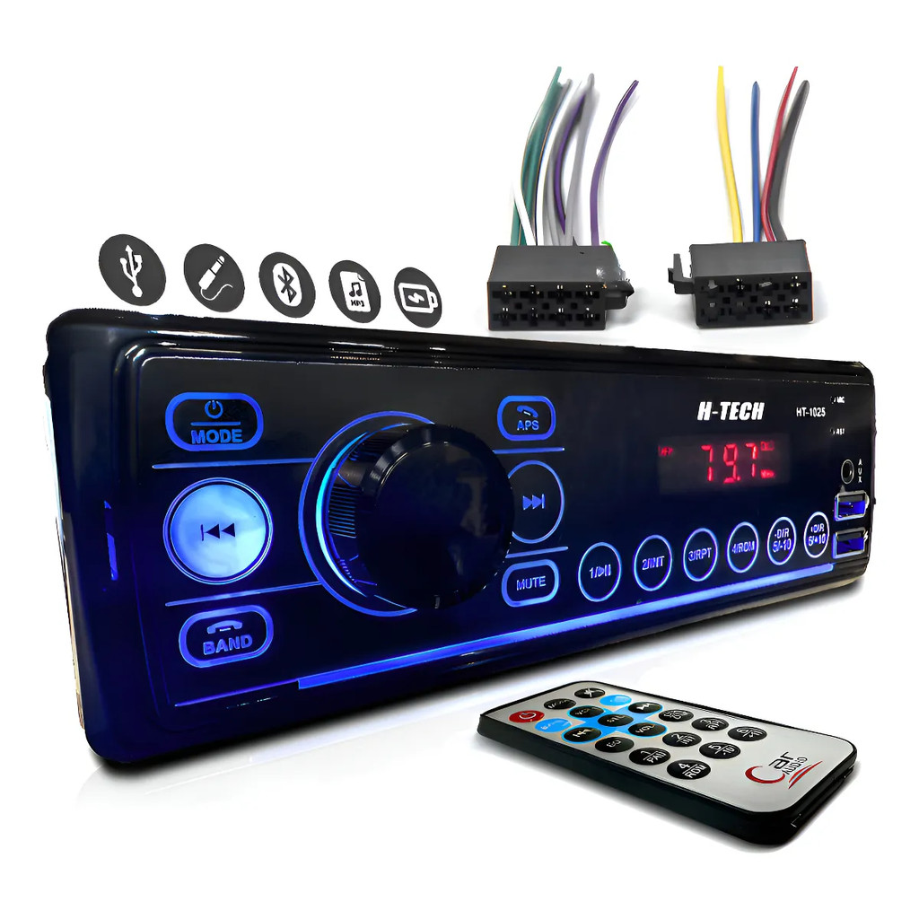 Som Rádio Automotivo Bluetooth Usb Card Sd Aux Fm Mp3 H-tech