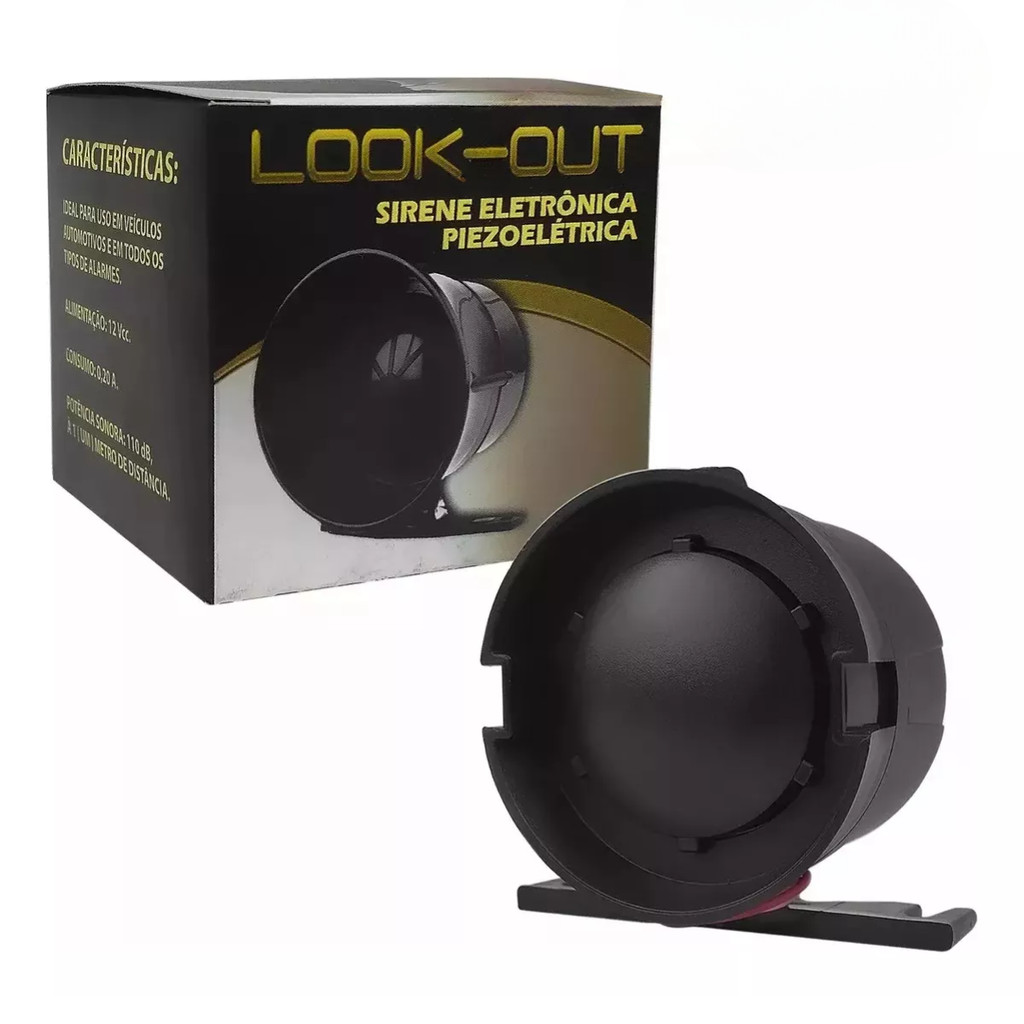 Sirene Dedicada Preta Para Alarme Automotivo Look Out