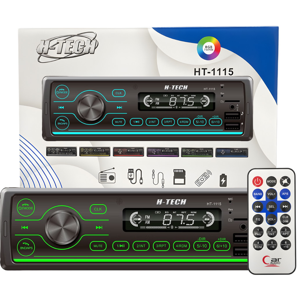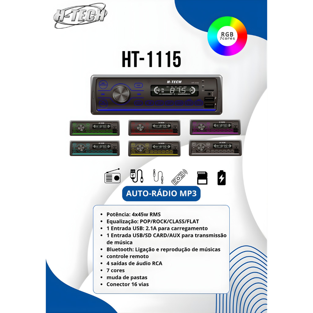 Radio Som Automotivo H-tech 1115 4x45W Rms Usb 7 Cores Aux