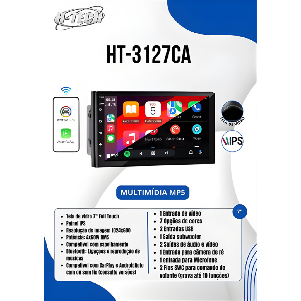 Central Multimídia 7pol 2din Carplay Full Touch H-tech