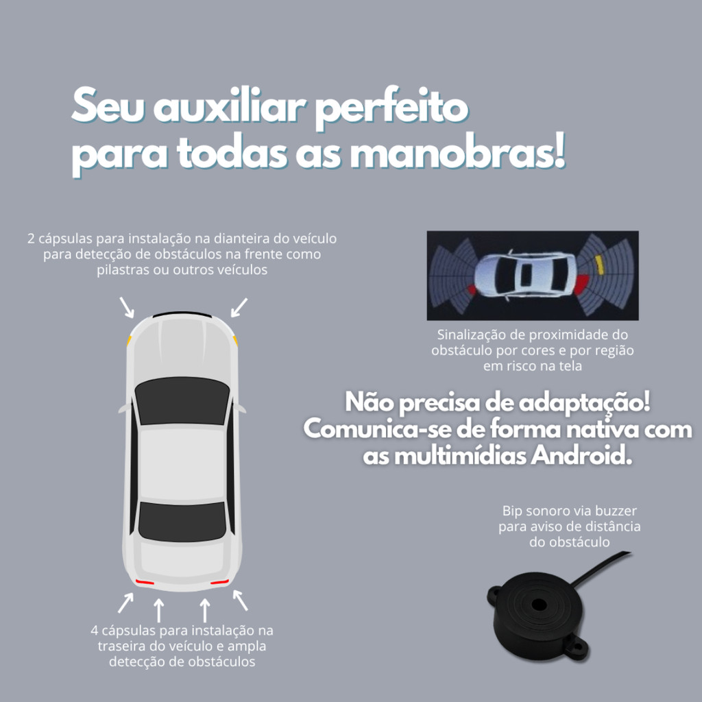 Sensor De Estacionamento Multimídia Android Kx3 Preto Fosco
