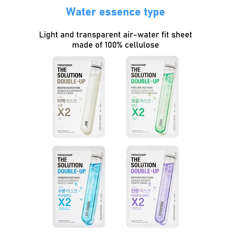 [The FACE SHOP] Folha De Máscara Dupla Solution-Hidratação/Nutrição/Iluminador 20ml