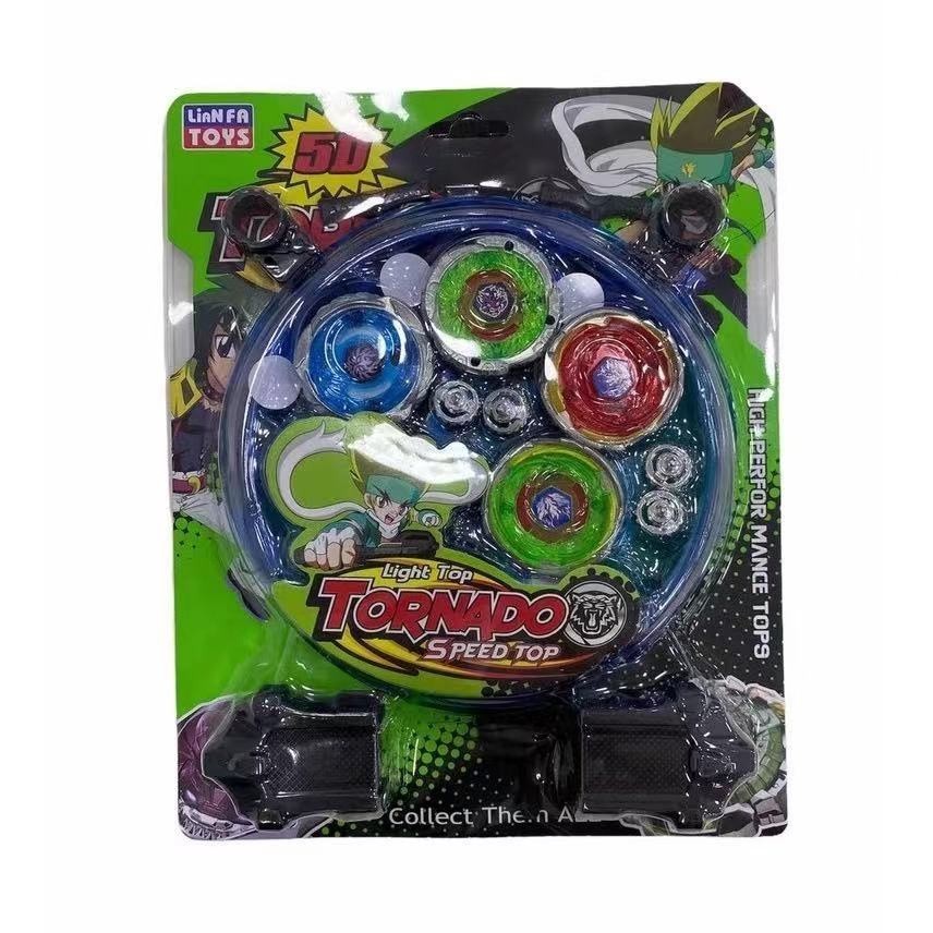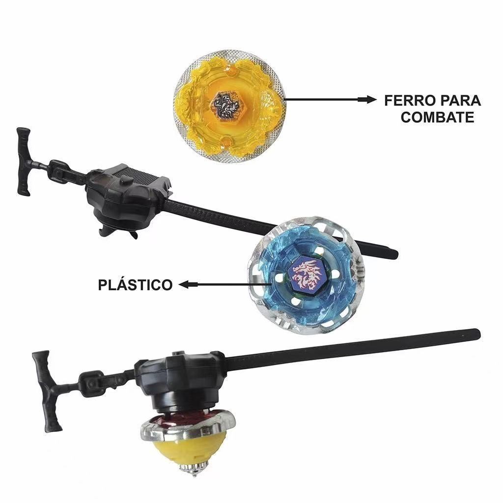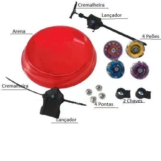 BRINQUEDO Kit 4 Beyblade Metal Fusion Led Tornado C/arena 2 Lançador