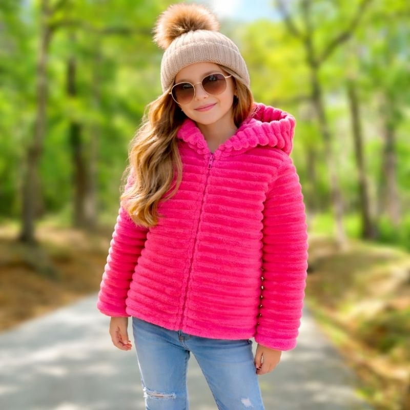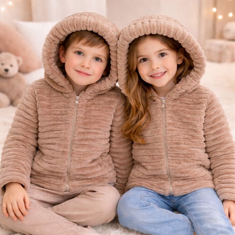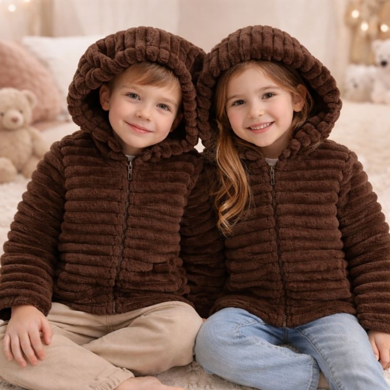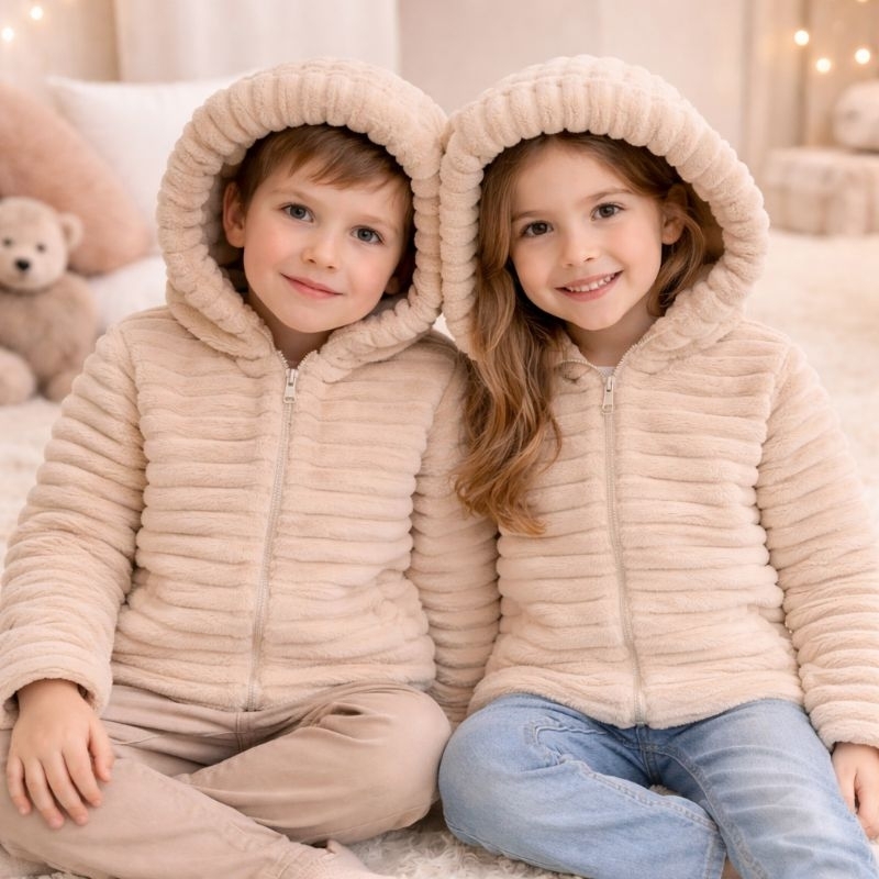 Blusa de Frio Infantil Escolar Menino e Menina Casaco Teddy com Capuz Soft Pelúcia Quente Fofinha