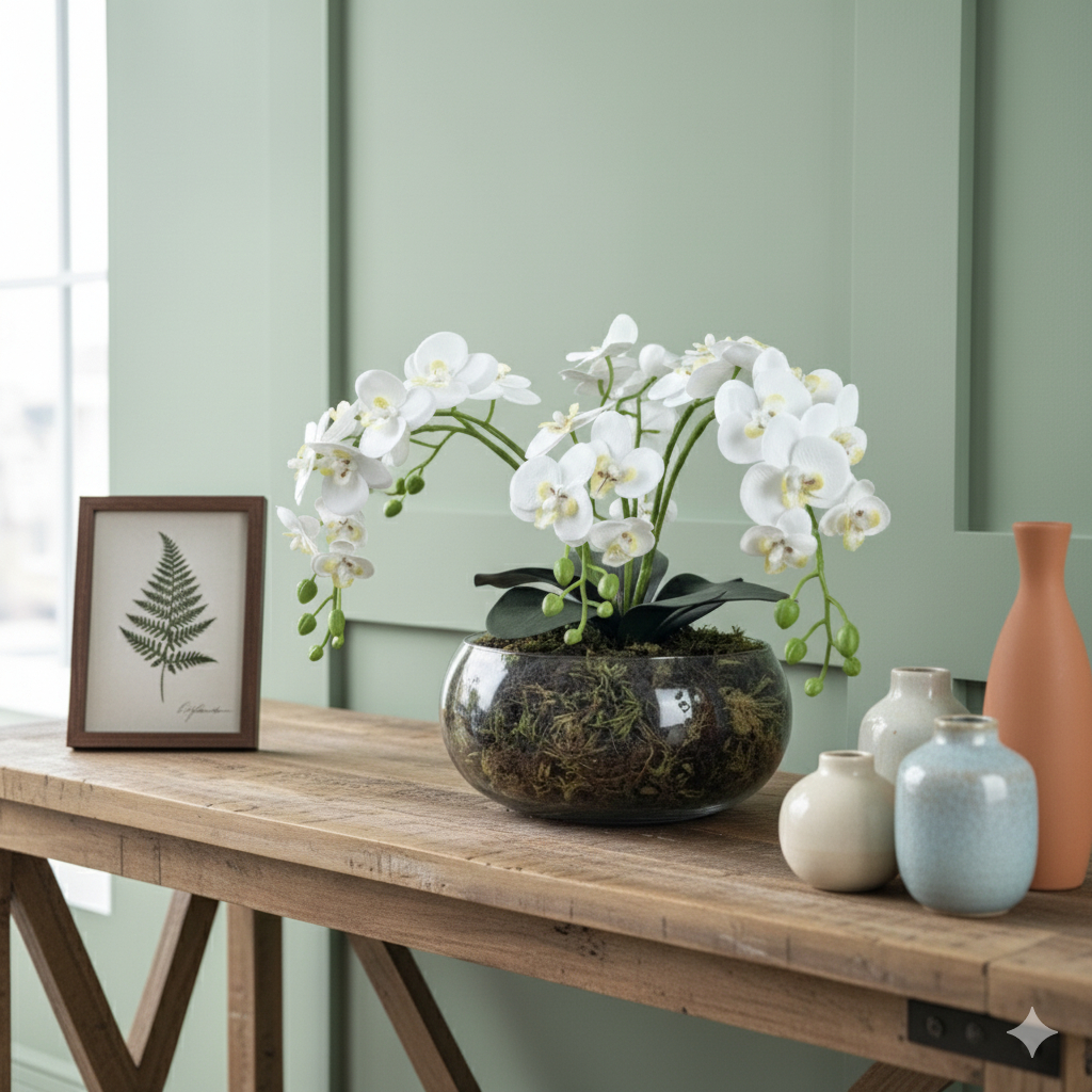 Arranjo Flores Orquidea Artificial Decorativa Centro de Mesa