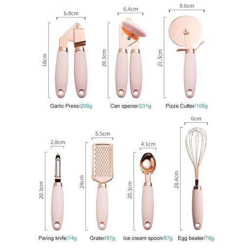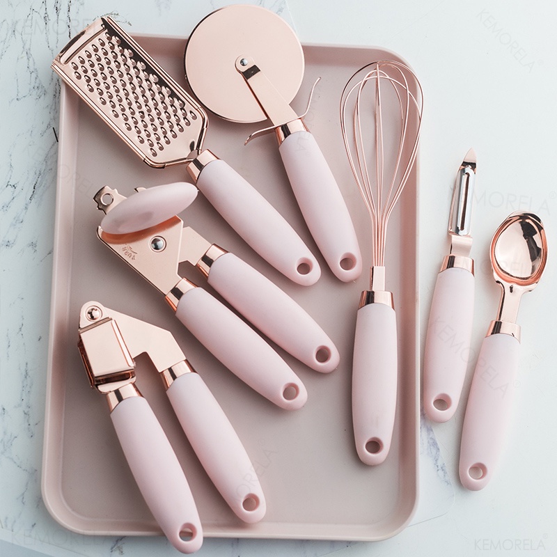 7 unidades de espremedor alho ouro rosa cortador pizza conjunto dispositivos cozinha abridor latas para cozinhar utensílios cozinha acessórios cozinha de alta qualidade