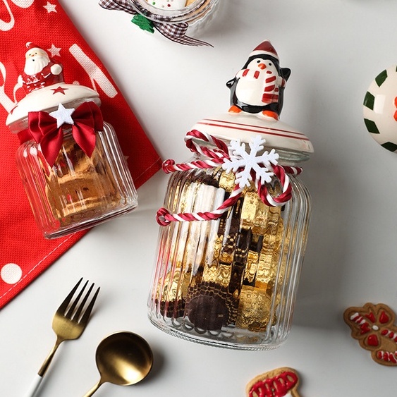 Latas De Natal Seladas Frascos De Açúcar Para Alimentos Café Grãos Vermelhos Vidro Inteiros