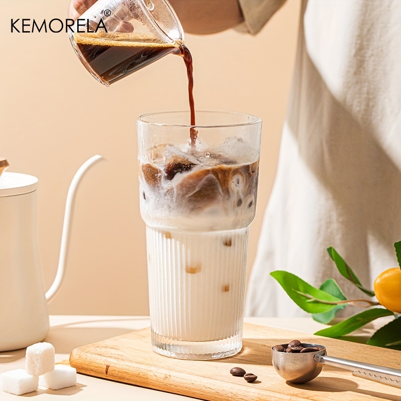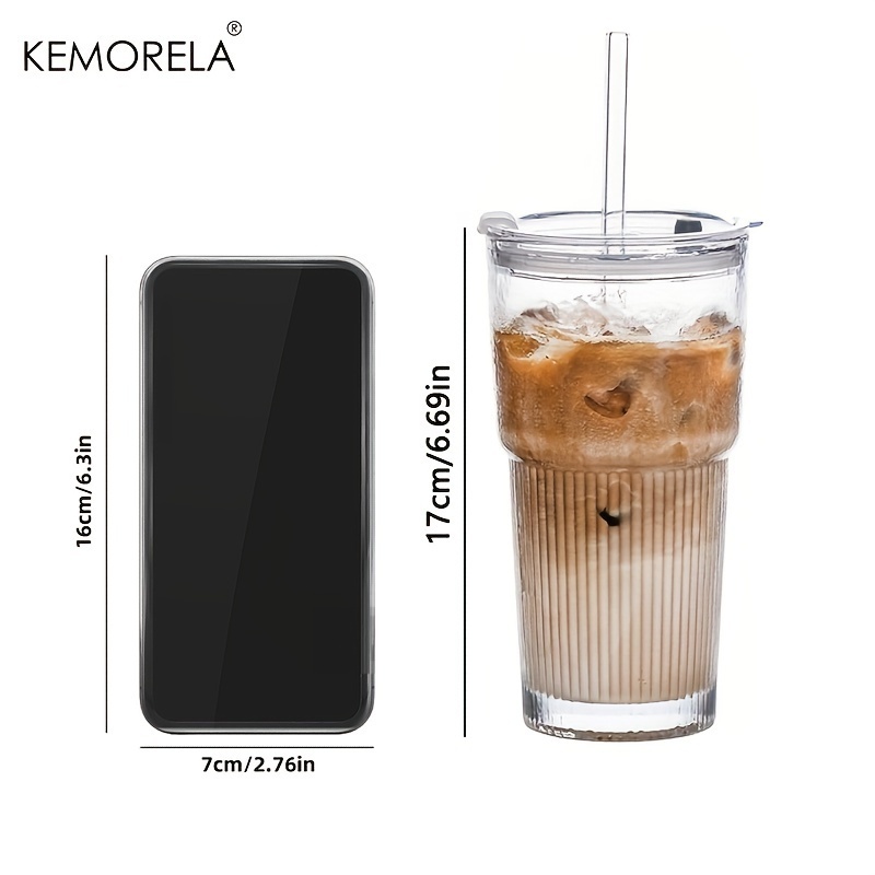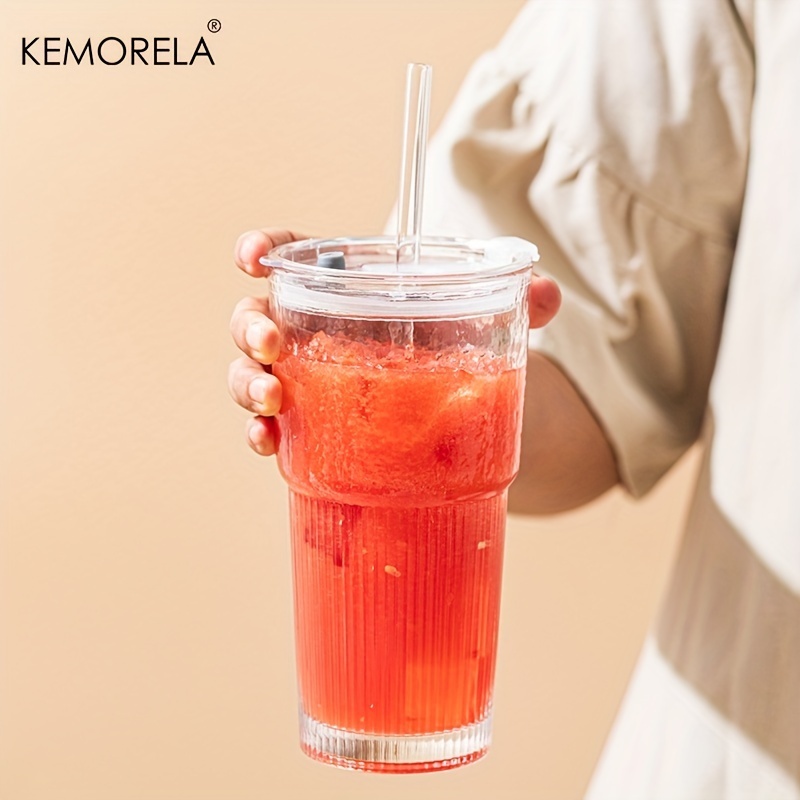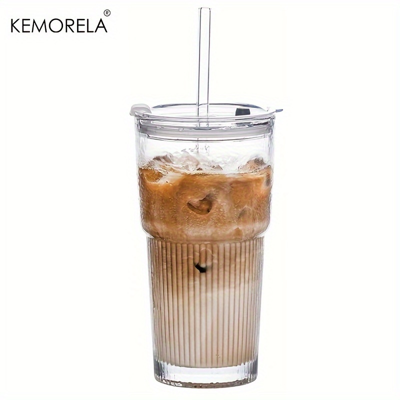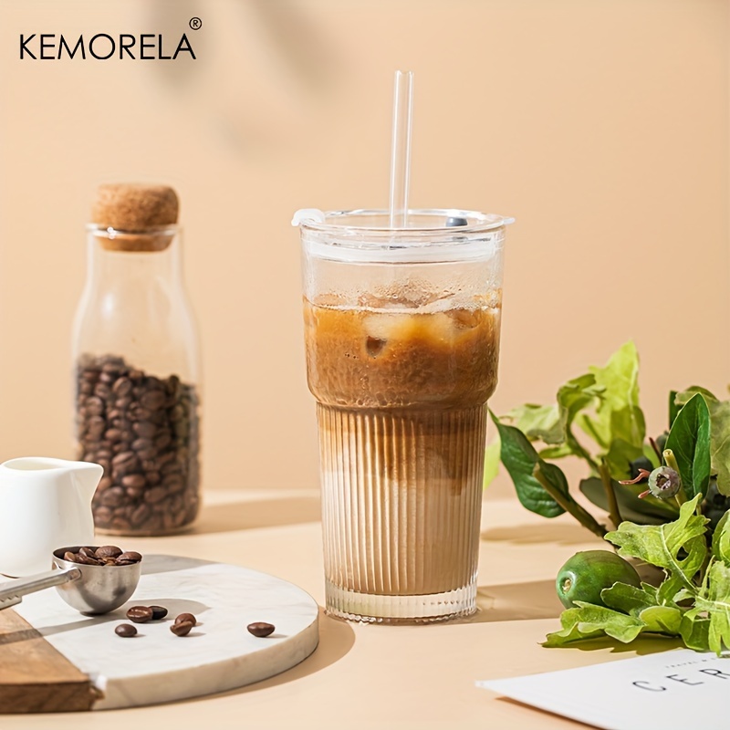 1/2 Unidades , Copos De Vidro Com Tampas E Canudos Elegantes Design Canelado Para Xícaras De Café Gelado , Suco , Smooth