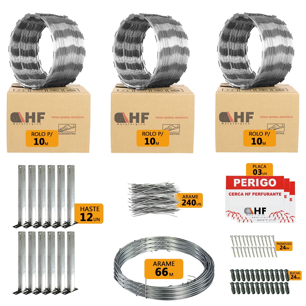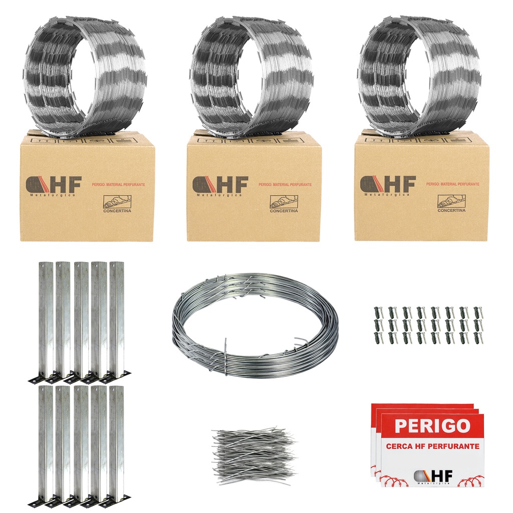 Cerca concertina simples galvanizada 30cm 30 metros com kit - Cod 4
