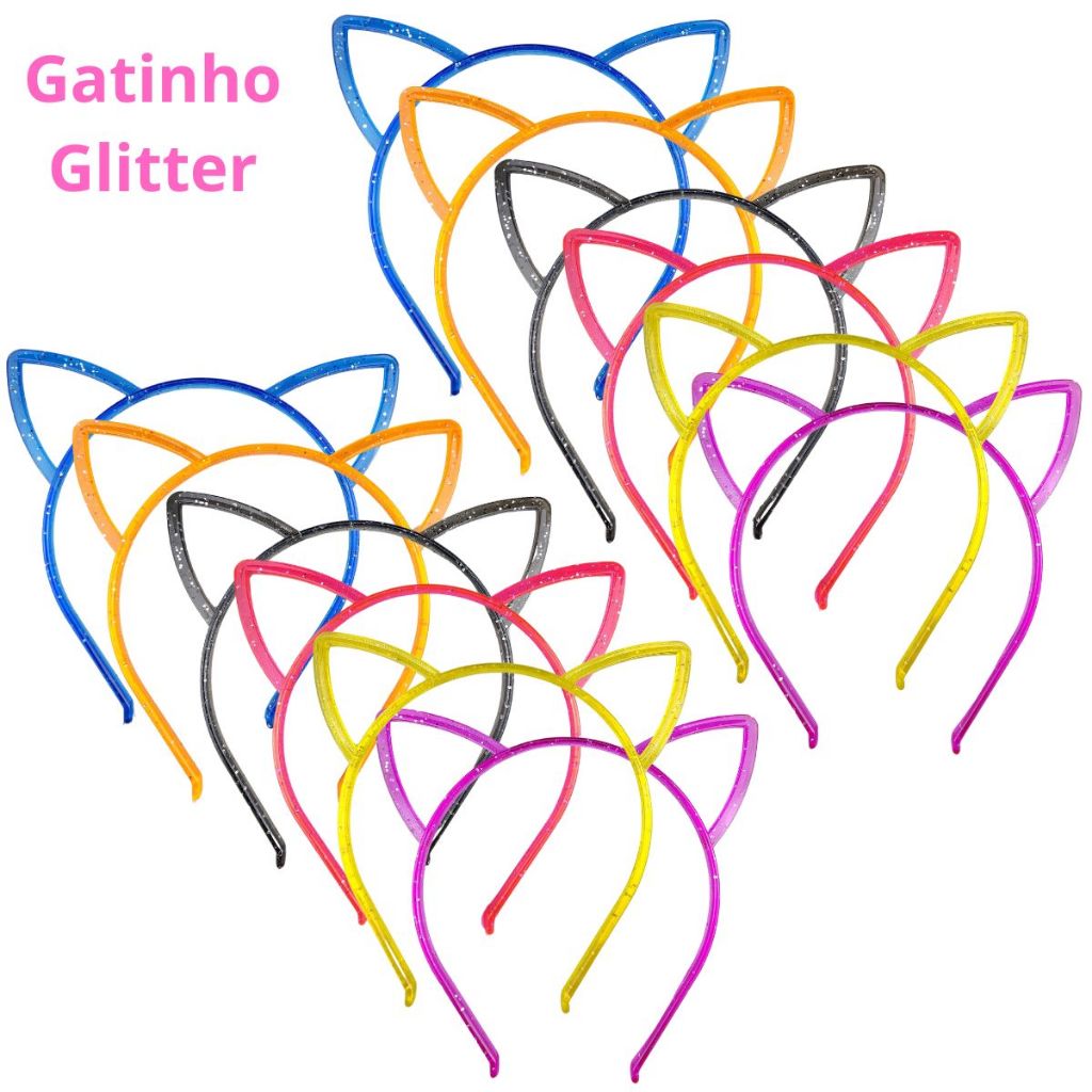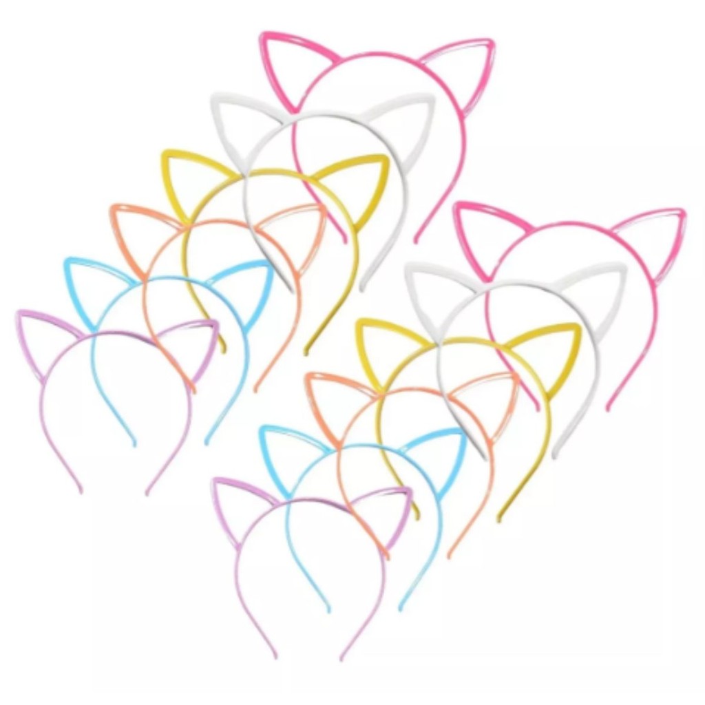 12 Tiaras Gatinho Arquinho Colorida Festa Fantasia Infantil