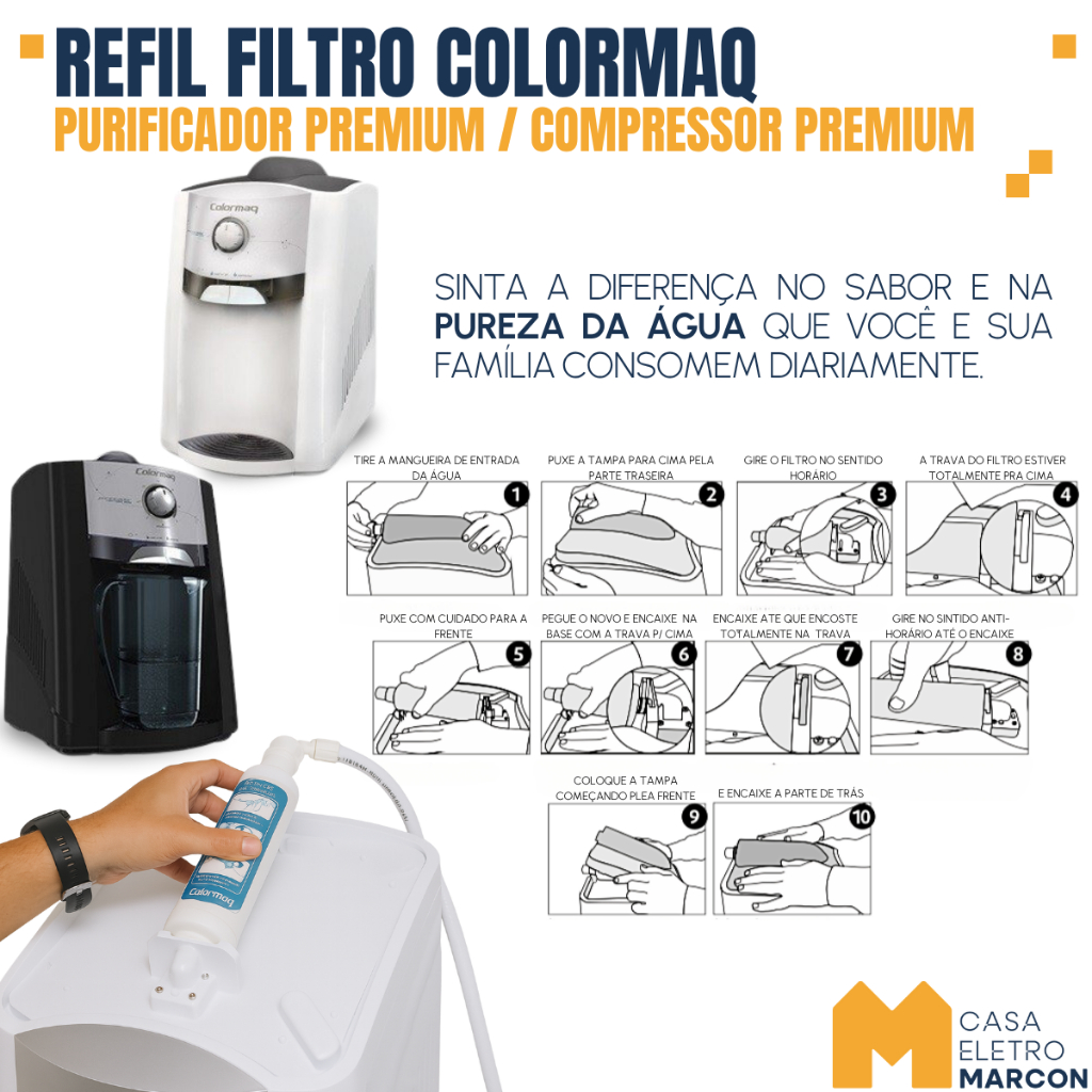 Refil Filtro Colormaq Premium Original Purificador De Agua Tripla Filtração Redução Cloro Impurezas