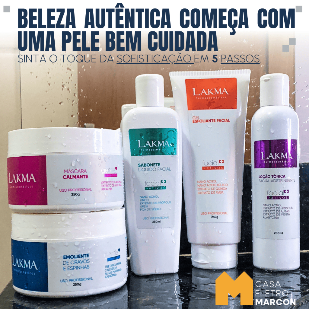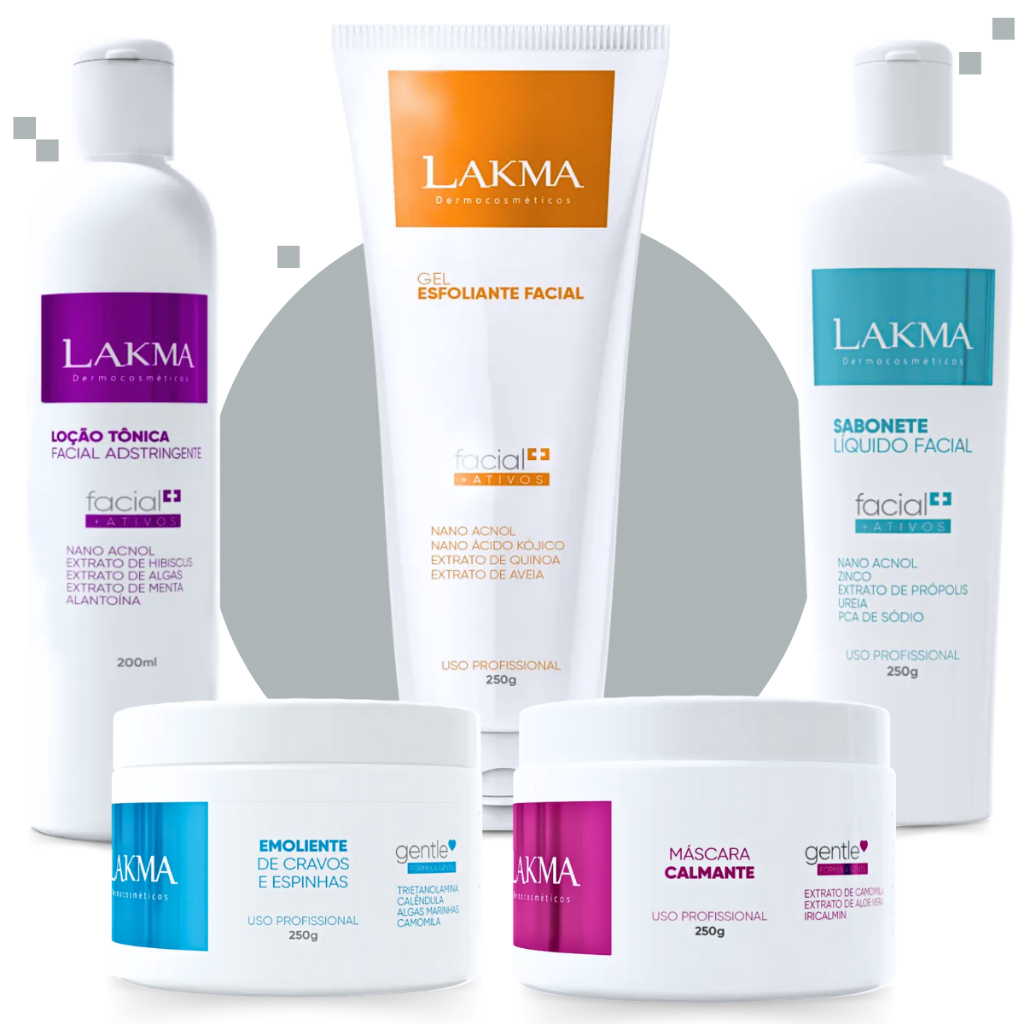 Kit Limpeza De Pele Lakma Uso Profissional 5 Itens Sabonete Esfoliante Tônico Emoliente Máscara