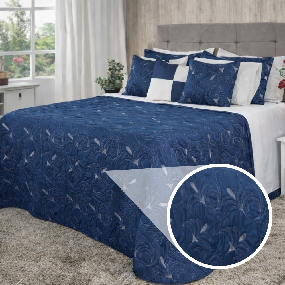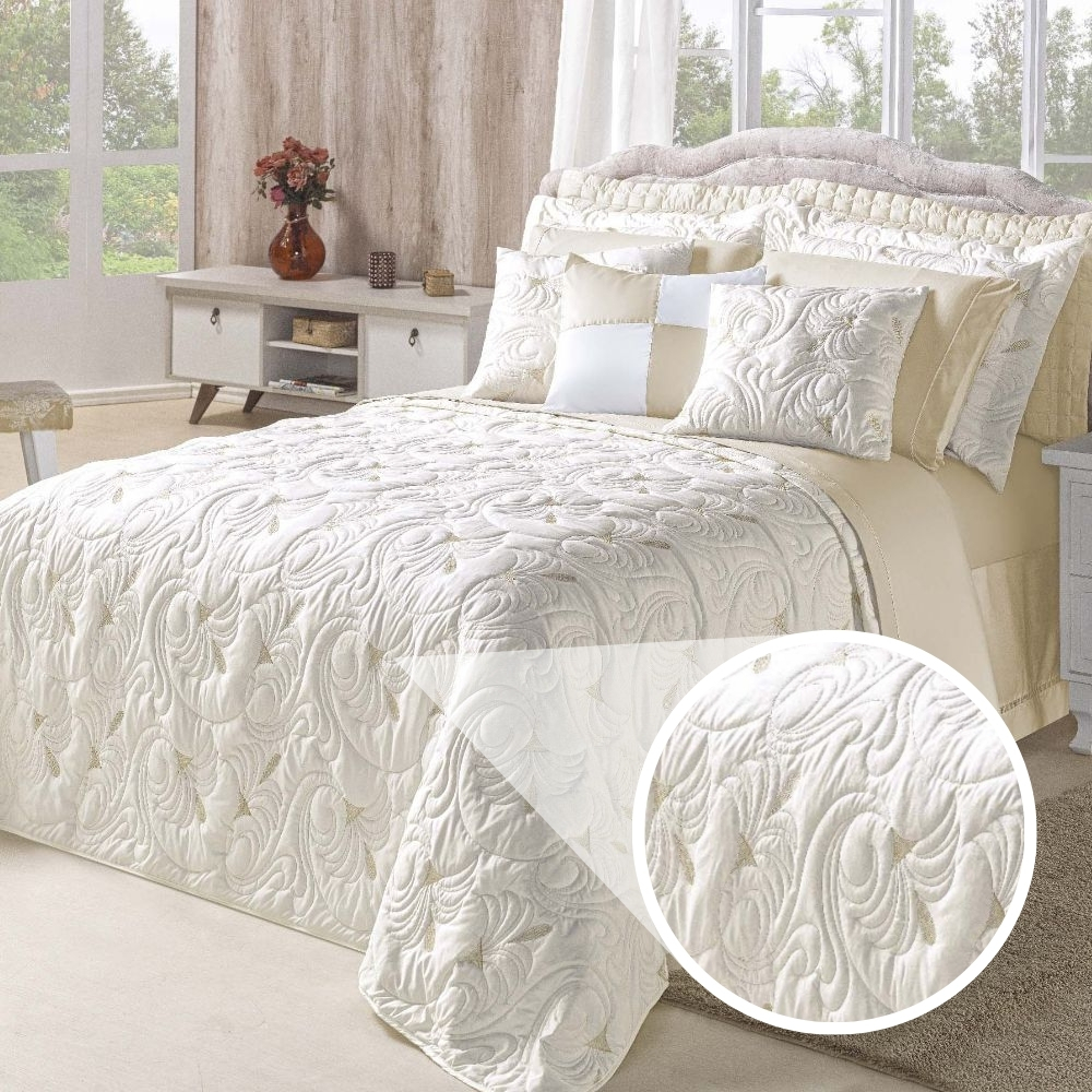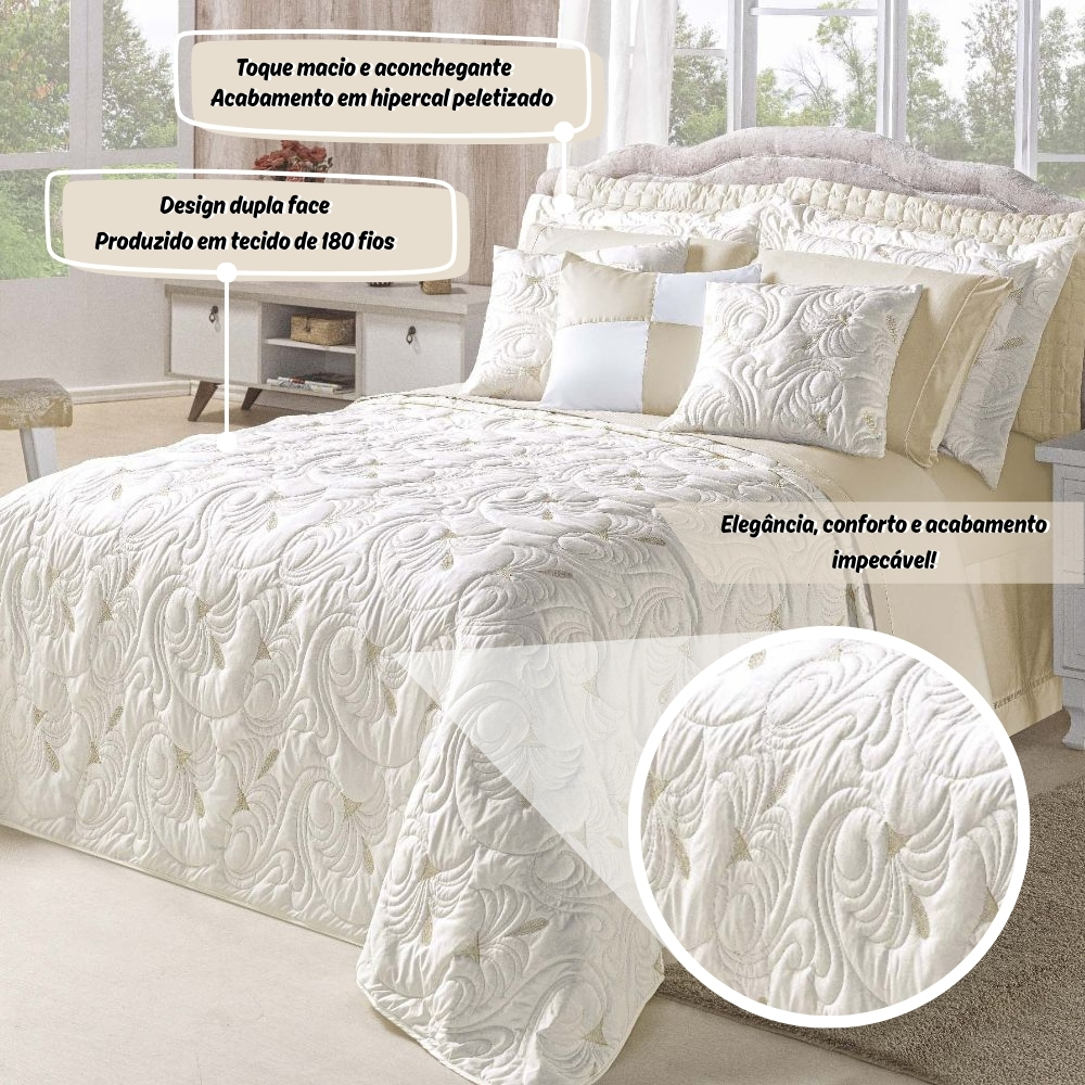 Kit Cobre Leito TODO BORDADO Casal Queen e King Melody 180 Fios Dupla Face