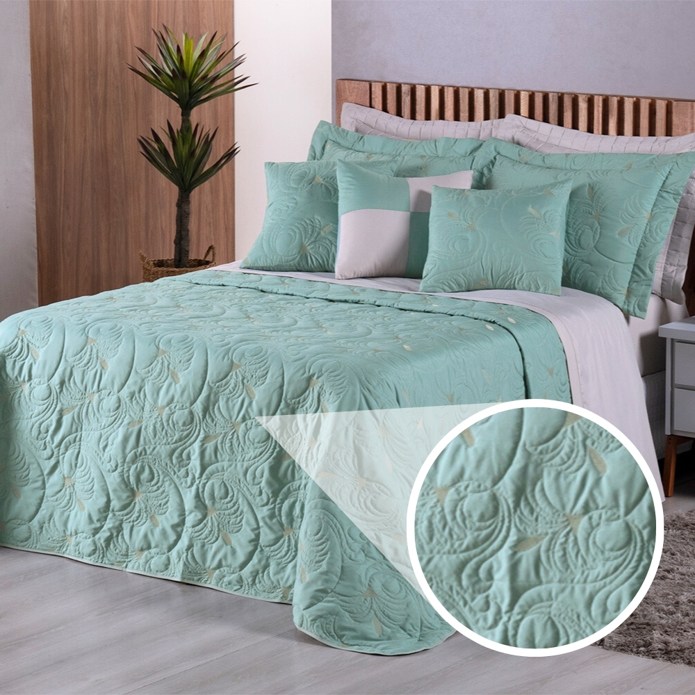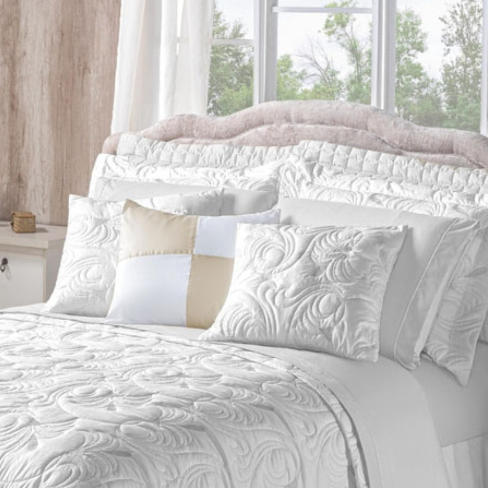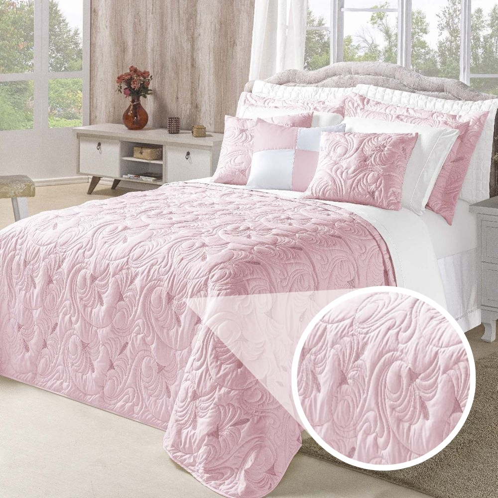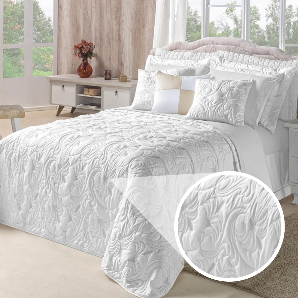 Kit Cobre Leito TODO BORDADO Casal Queen e King Melody 180 Fios Dupla Face