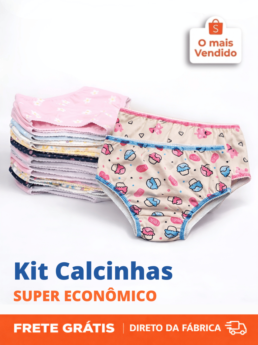 Kit Calcinha Infantil Menina Confortável Lisa e Estampada Kit com 3 9 e 12 unidades