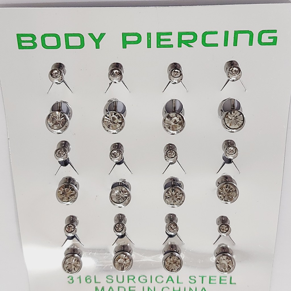 Kit 12 Pcs Piercing de Umbigo Com 2 Pedras Aço Inoxidável