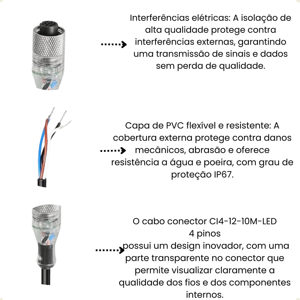 Cabo Conector M12 Ci4-12 4 Pinos Femea Reto 10M - Led