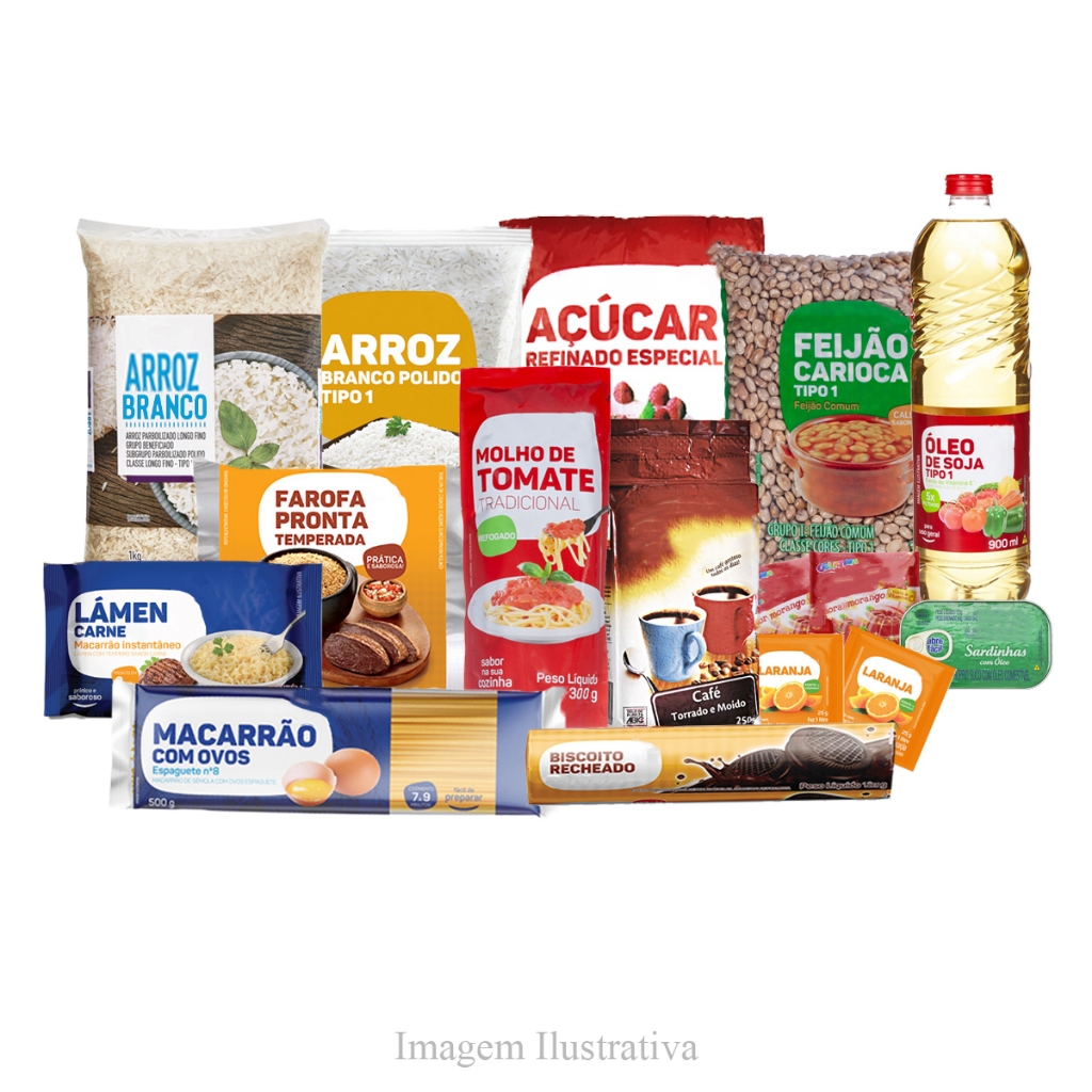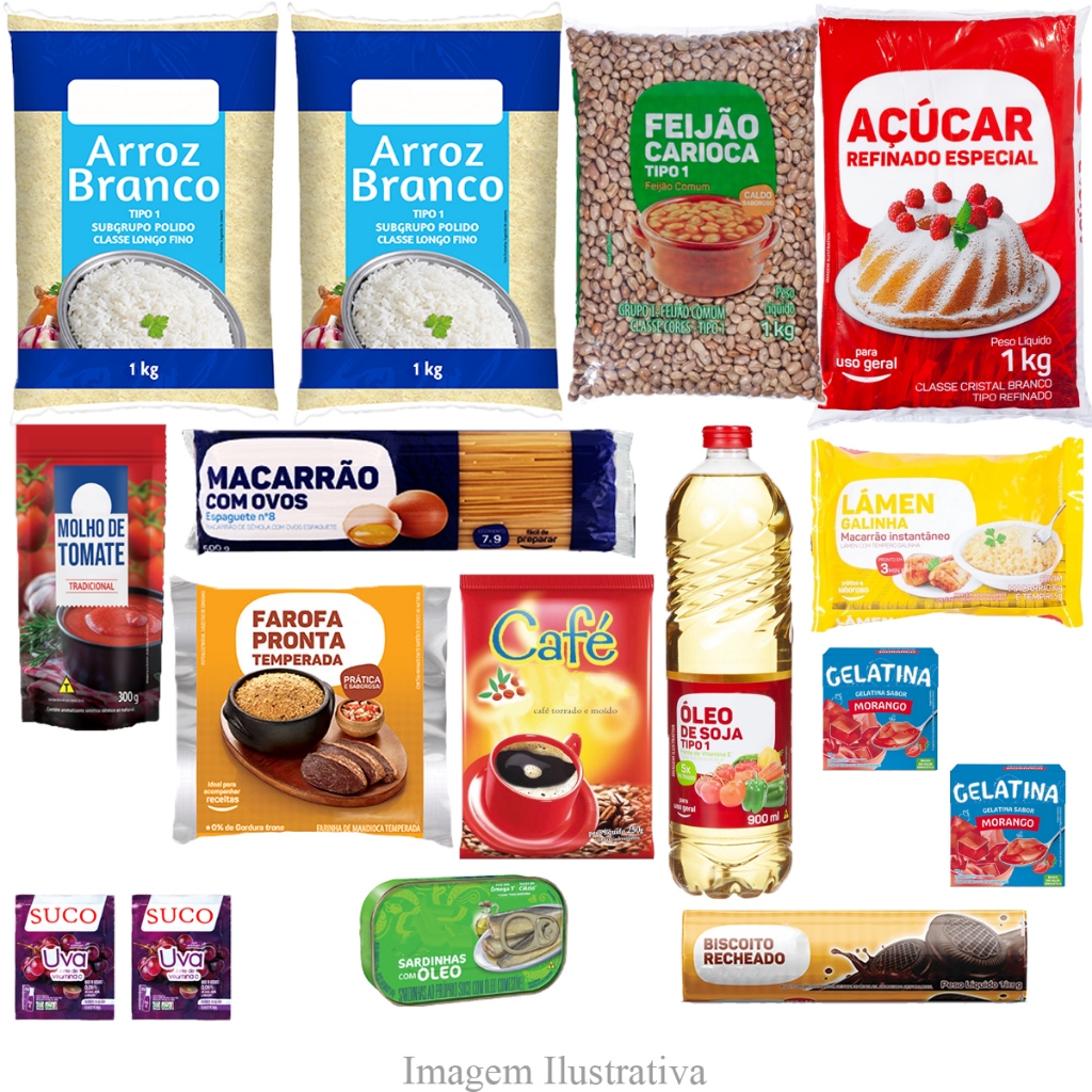 Kit C/ 2 Cesta Básica Completa Alimentos Essenciais 16 Itens