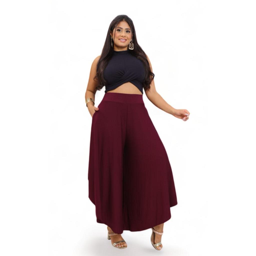 CALÇA PANTALONA FEMININA GODÊ MALHA VISCOLYCRA CINTURA ALTA TAMANHO ÚNICO