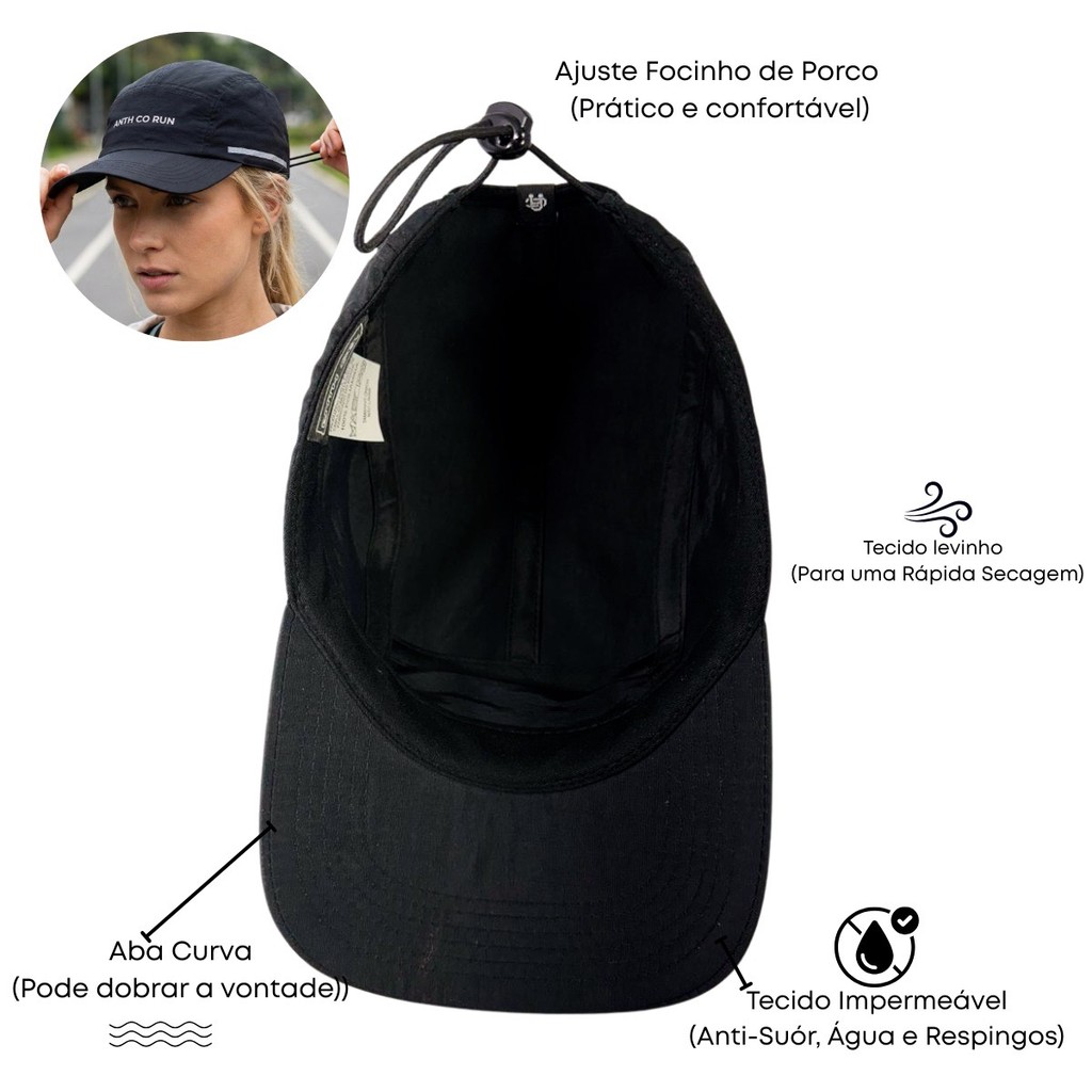 Boné Corrida Esportes Fitness Anth Co Reflex Impermeável Aba Curva Original Leve Masculino Feminino Urbano Academia
