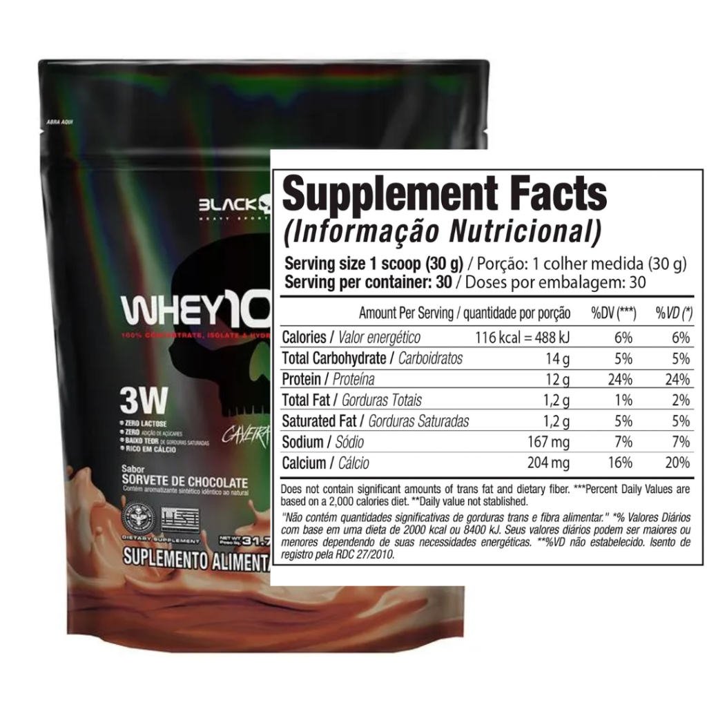 Whey 100%HD Refil 900g - (WPC, WPI E WPH) - BlackSkull