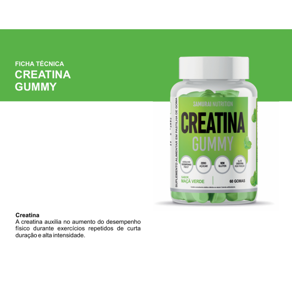 Creatina Gummy 60 Gomas Maça Verde - Samurai Nutrition