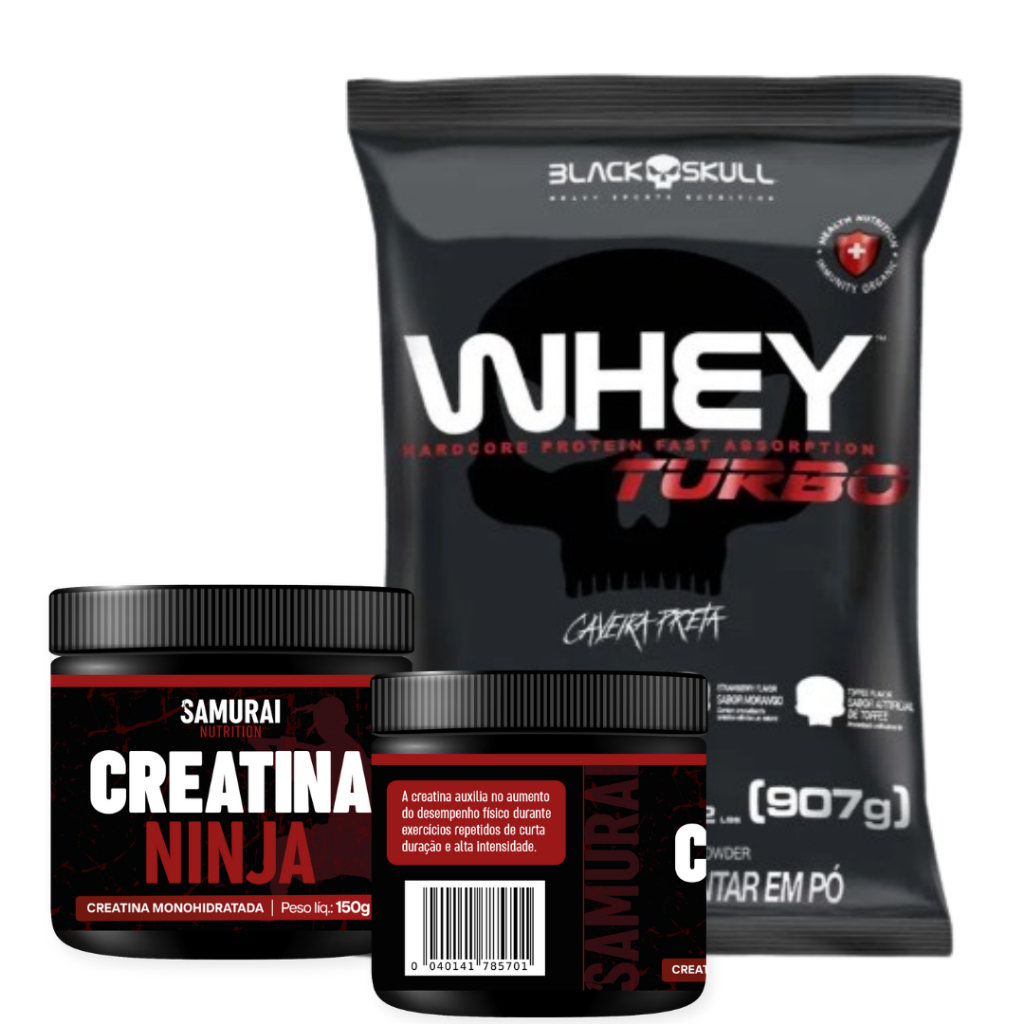 Kit 1x Creatina Monohidratada Ninja - Samurai Nutrition + 1x Whey Turbo 907G - BlackSkull