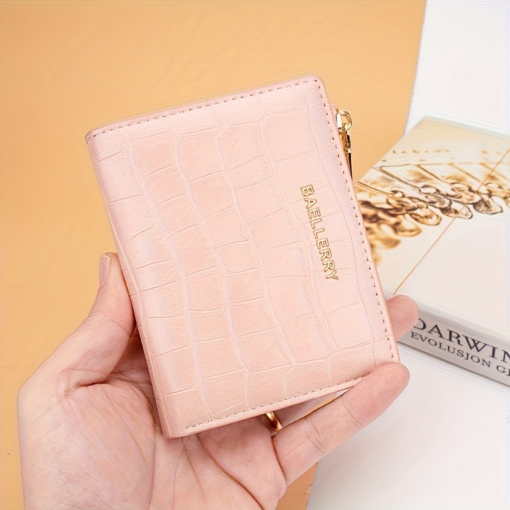 Bolsa Carteira Feminina De Moedas Com Zíper Pequena, Padrão Pedra, Fechadura De Cartão De Crédito