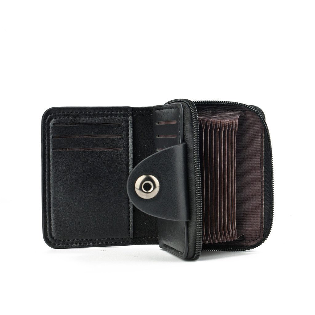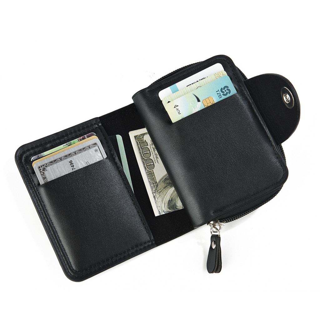 Carteira Masculina Estilosa Em Couro Sintético Com Zíper E Fivela Para Cartões E Moedas