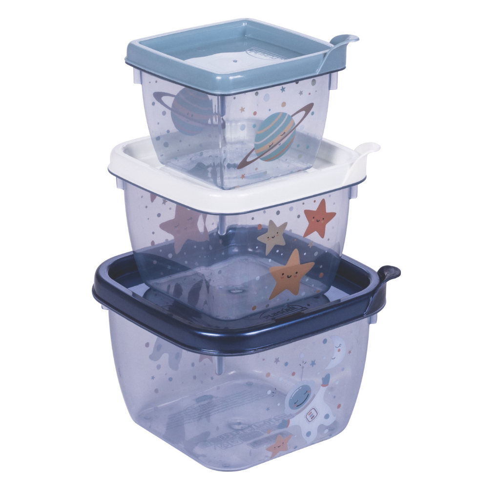Kit 3 Potes Para Armazenar Lanche Papinha Plasutil Bebê Potinhos Infantil