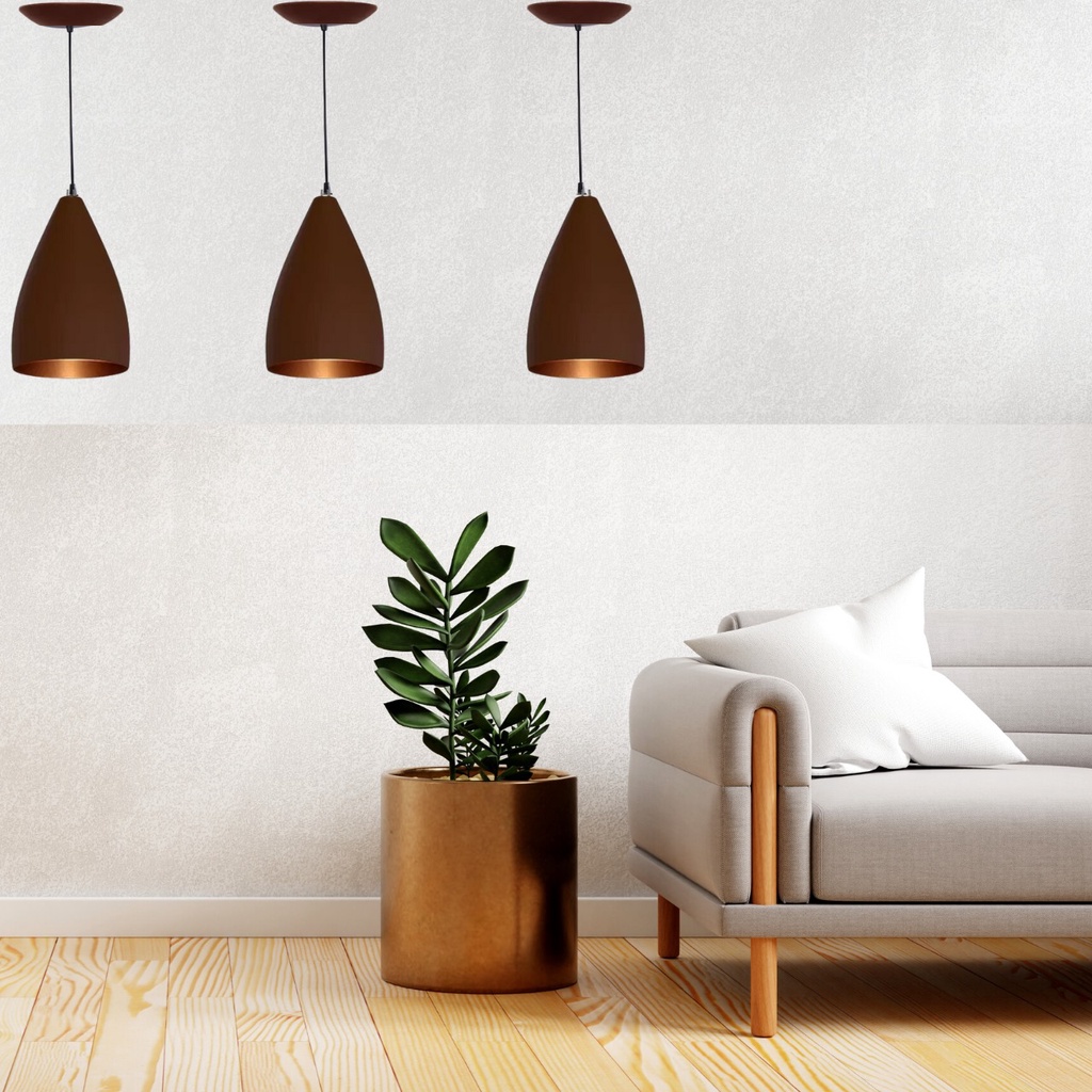 Kit 3 Luminárias Marrom e Cobre Pendentes VEGAS Decorações Internas E Externas