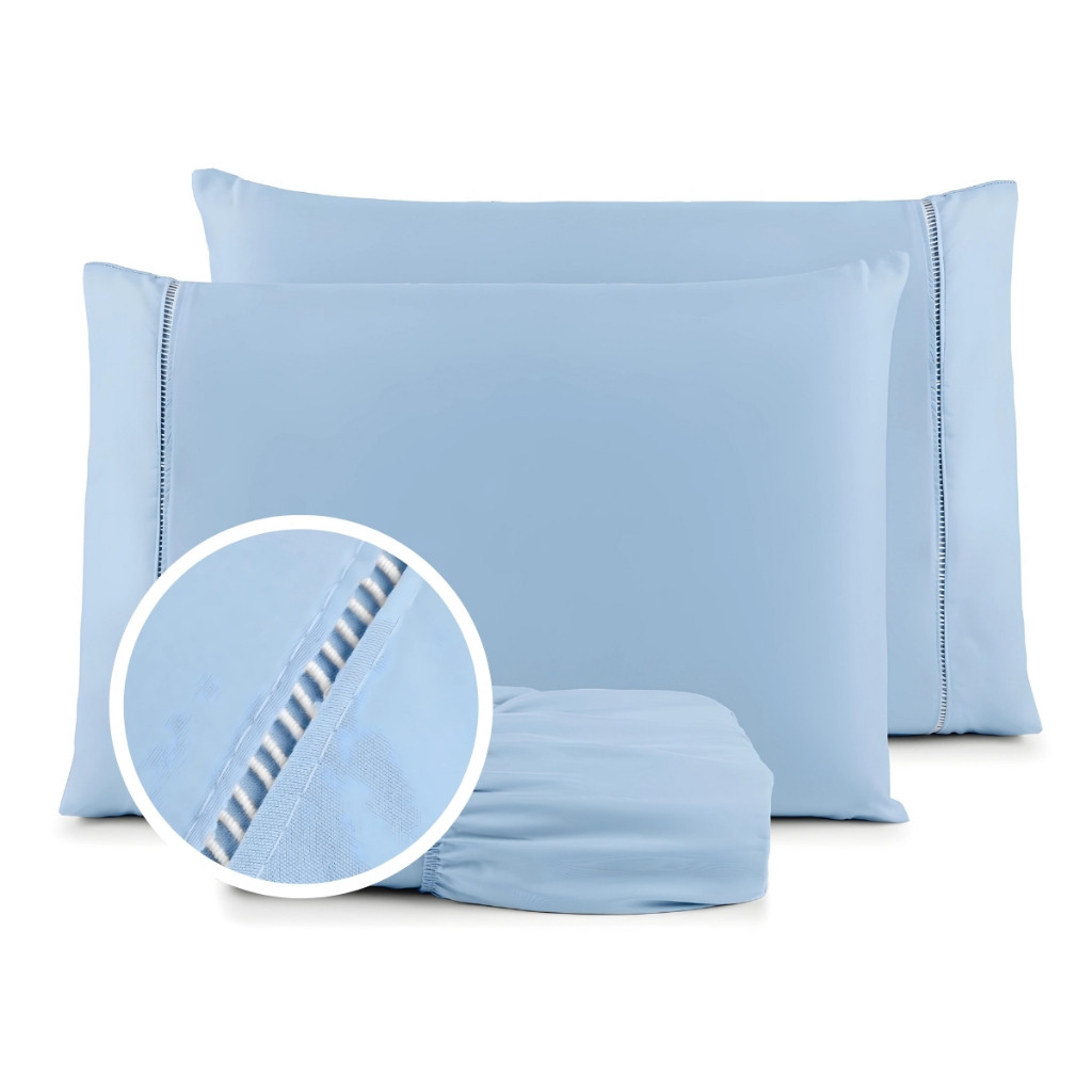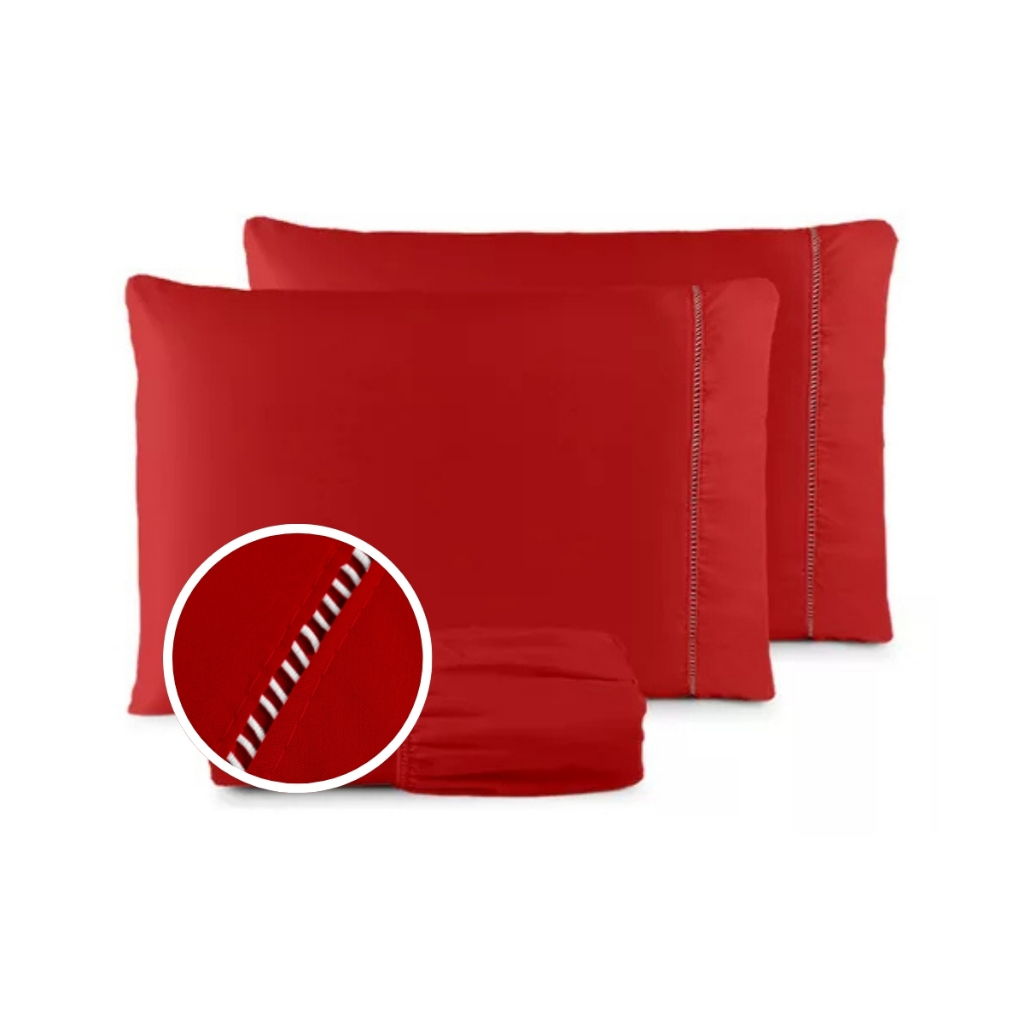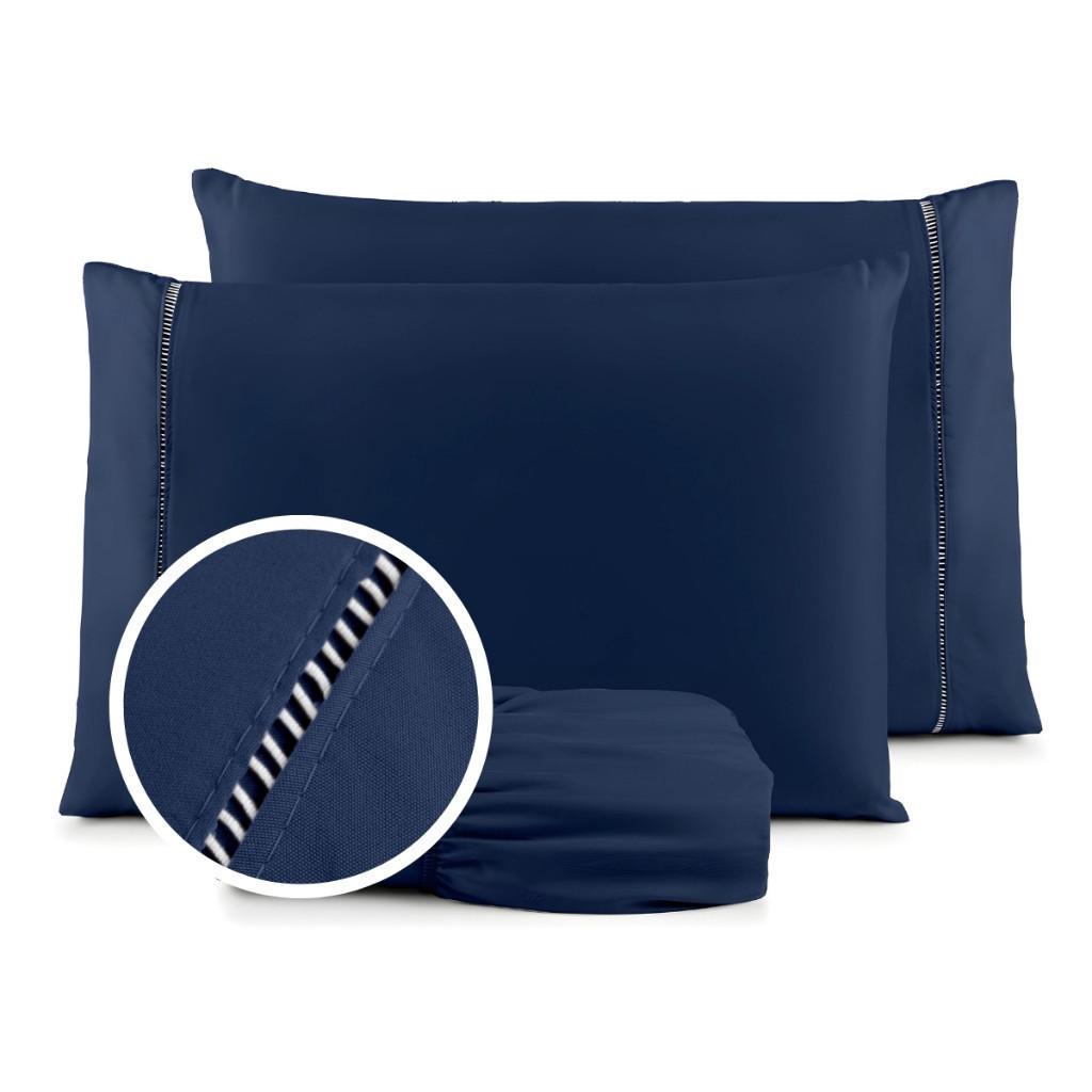 Jogo de Lençol e Fronha De Cama Solteiro Casal Padrão Queen Percal 400 Fios 03 Peças Ponto Palito