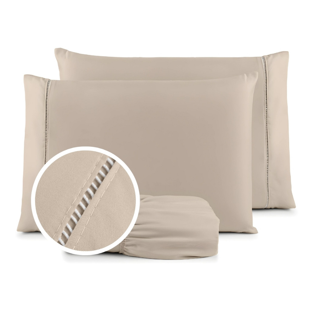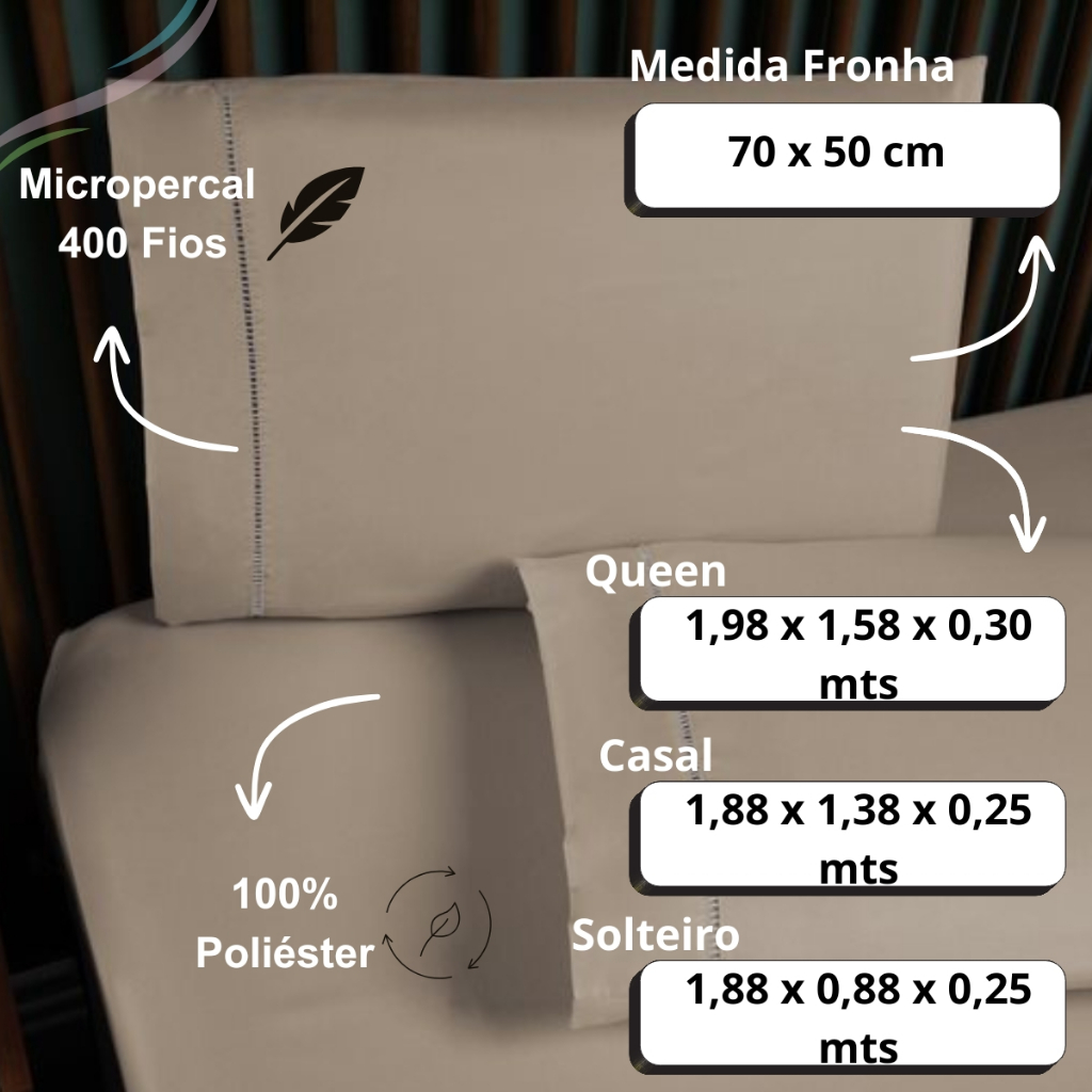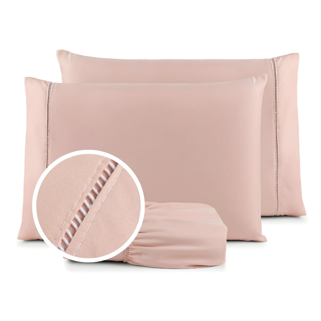 Jogo de Lençol e Fronha De Cama Solteiro Casal Padrão Queen Percal 400 Fios 03 Peças Ponto Palito