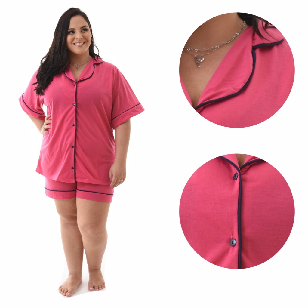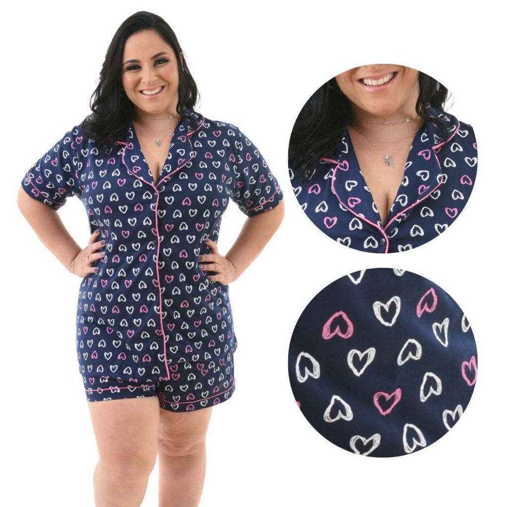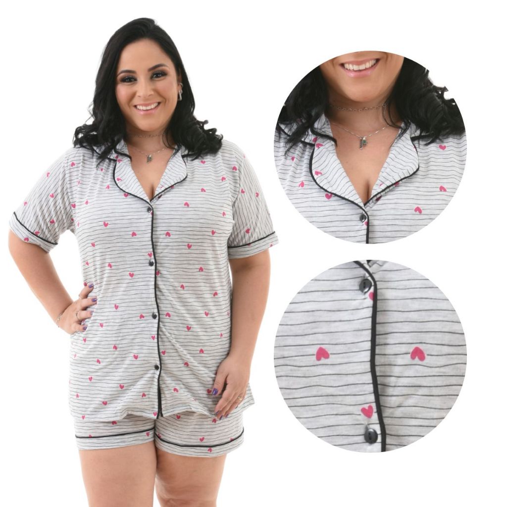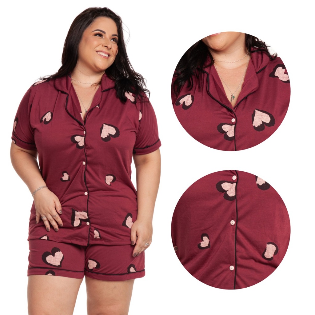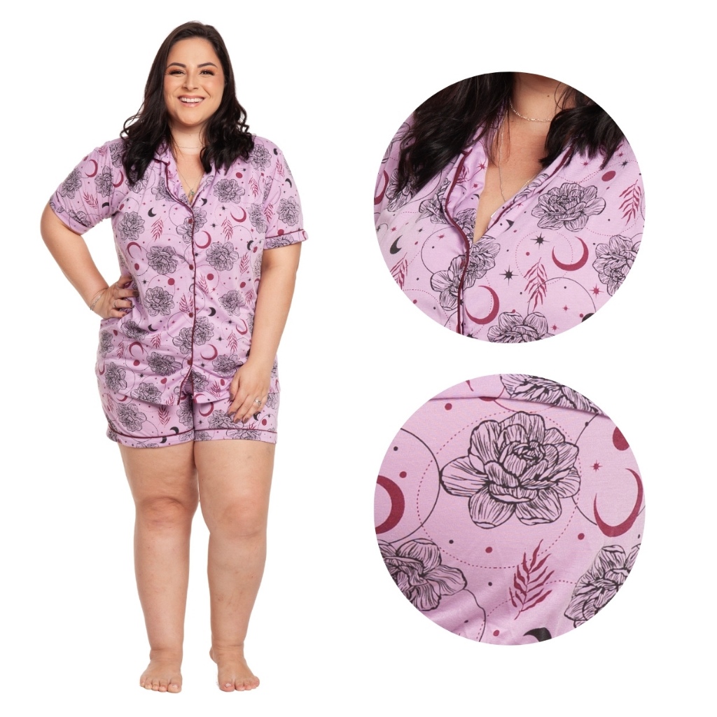 Pijama Baby Doll Plus Size 48/50/52/54 Amamentação Americano Cirúrgico com botões