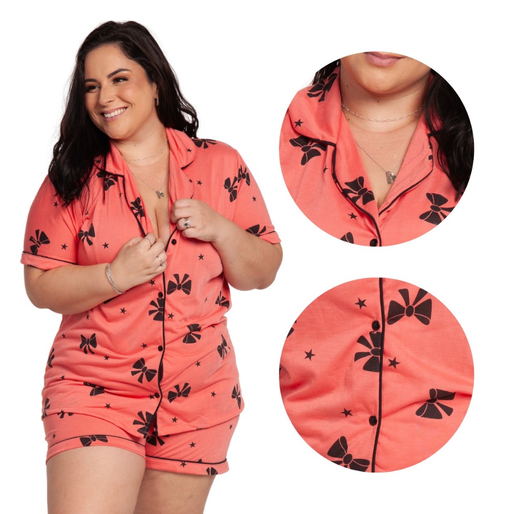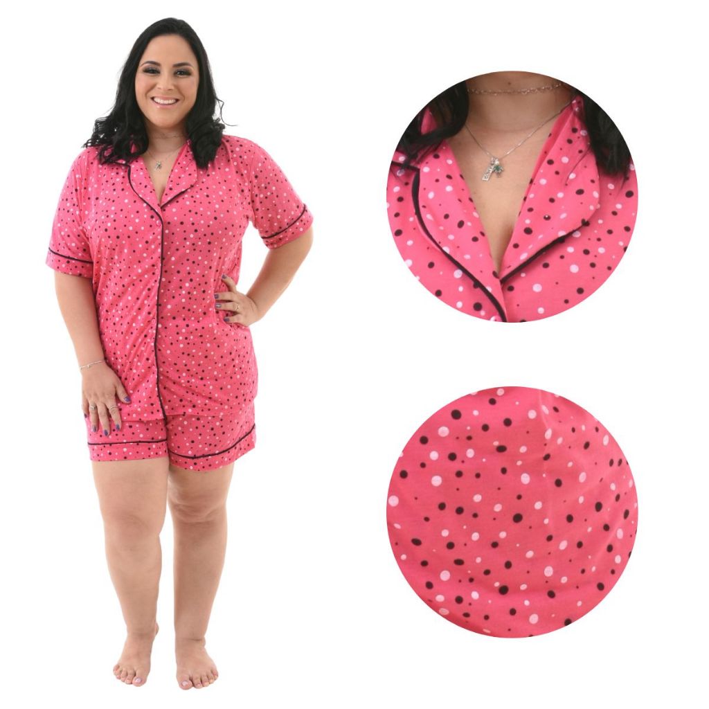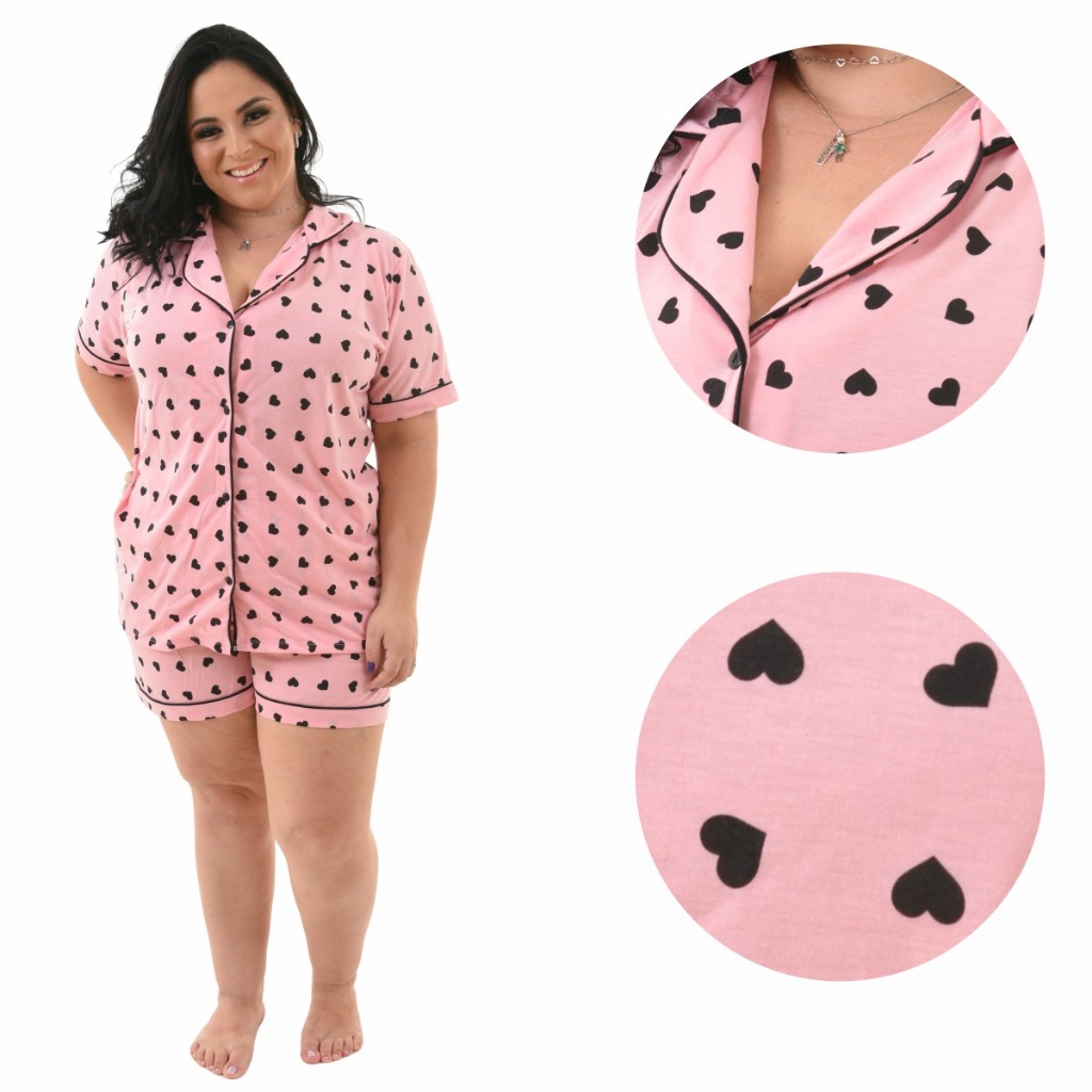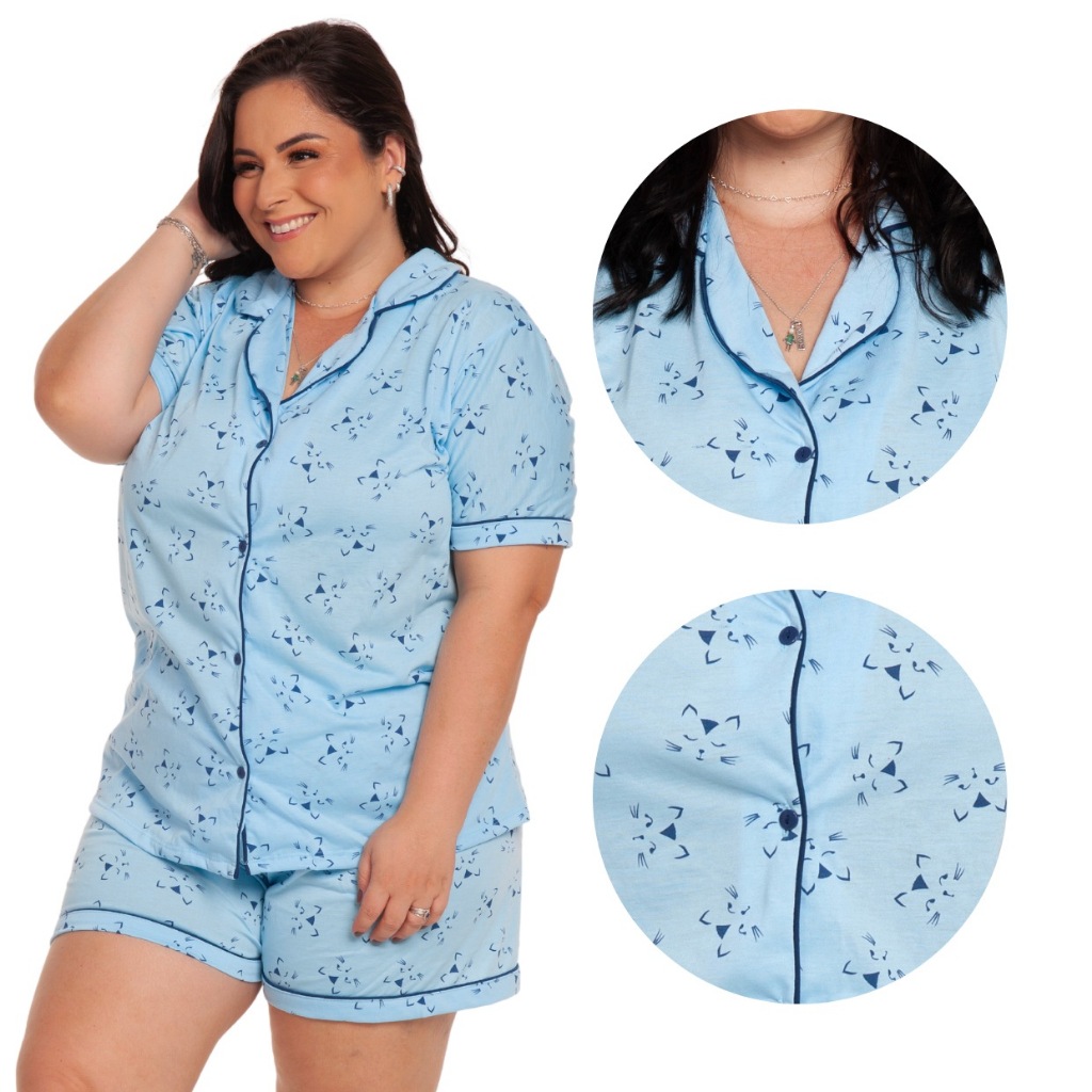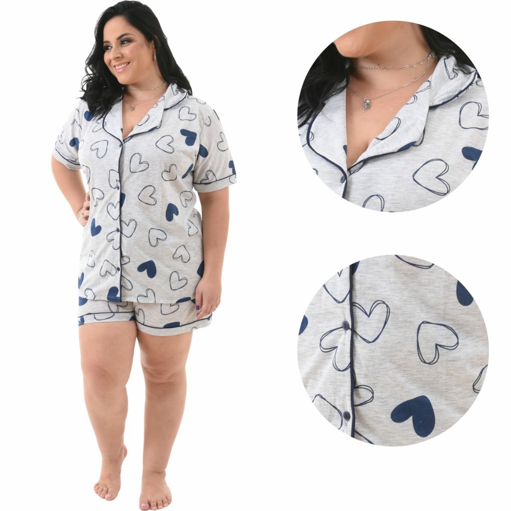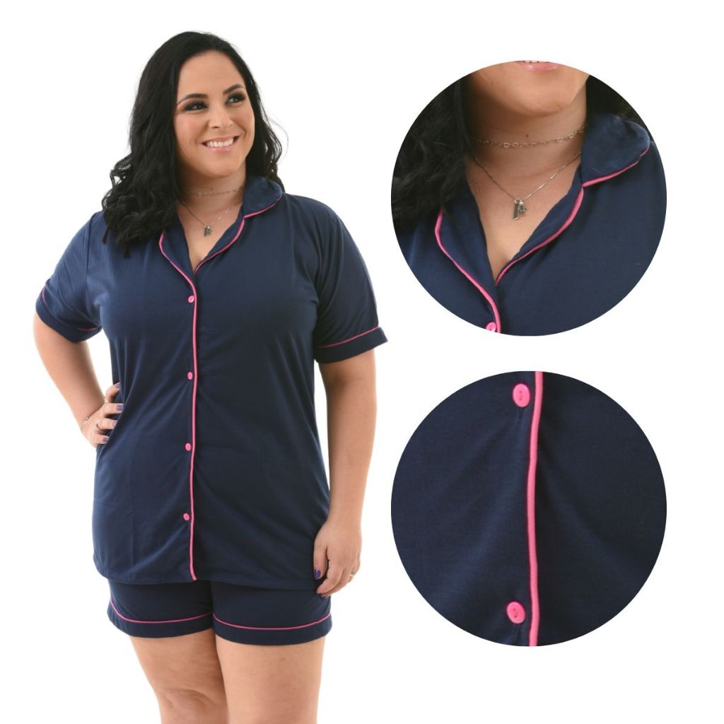 Pijama Baby Doll Plus Size 48/50/52/54 Amamentação Americano Cirúrgico com botões