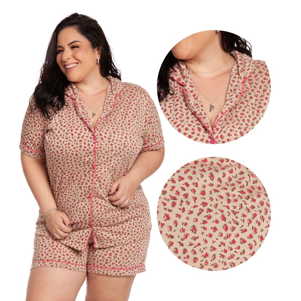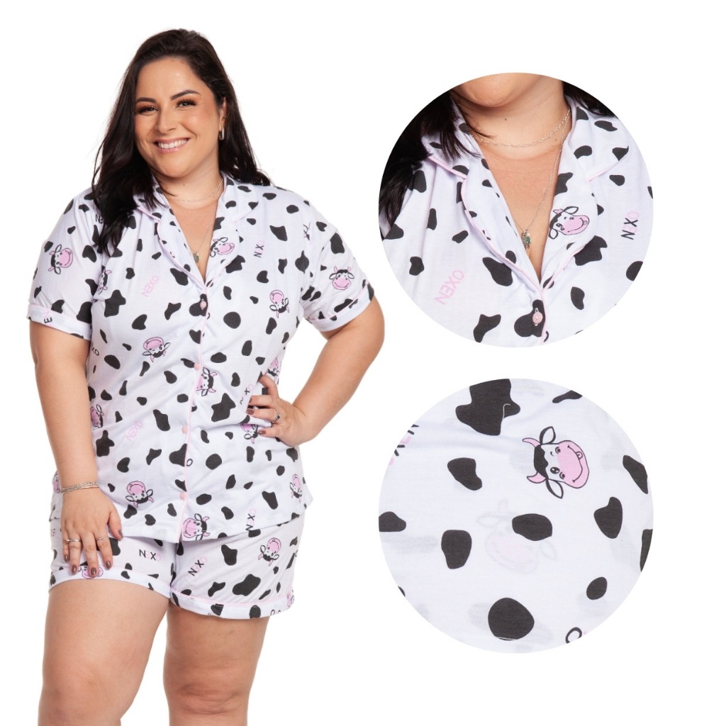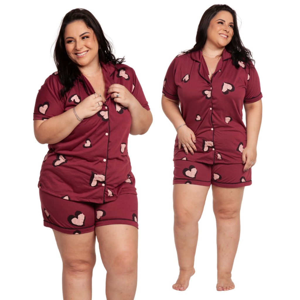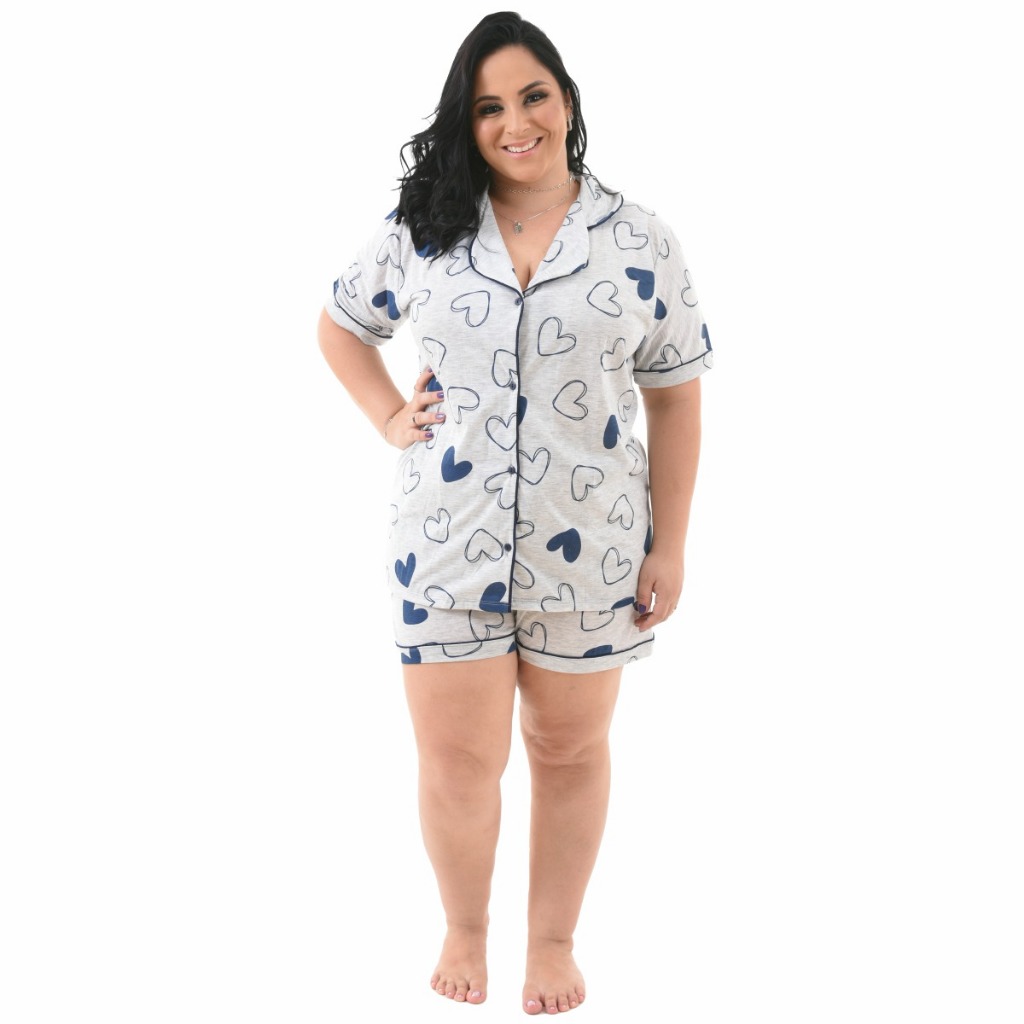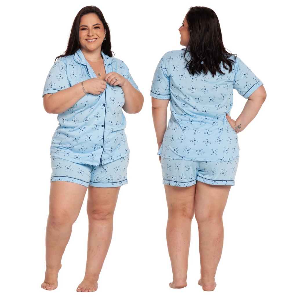 Pijama Baby Doll Plus Size 48/50/52/54 Amamentação Americano Cirúrgico com botões