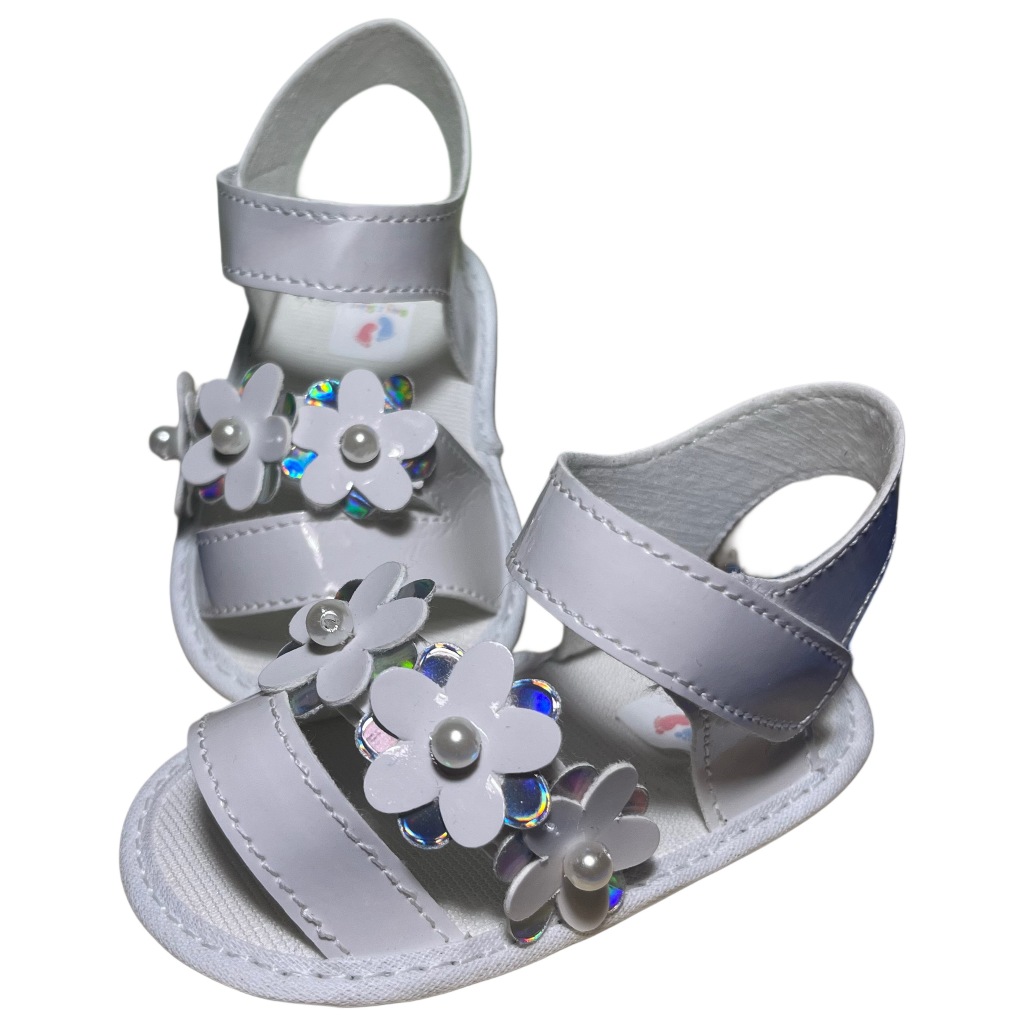 Sandalia Feminina Flor Perola Para Bebê Menina e Reborn