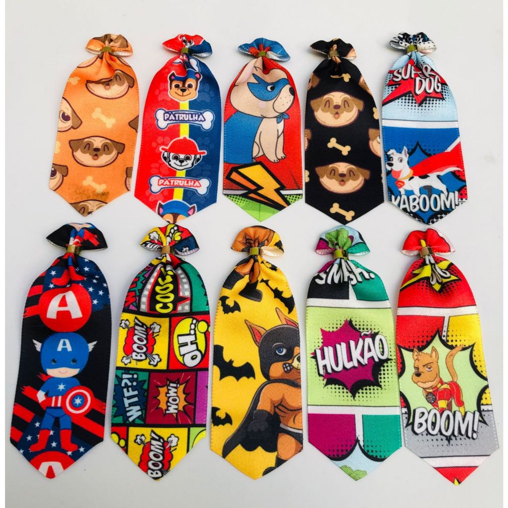 Kit 50 Gravatas Pet Macho coloridas Banho e Tosa Cães Cachorro Cetim Filhote/P/M/G