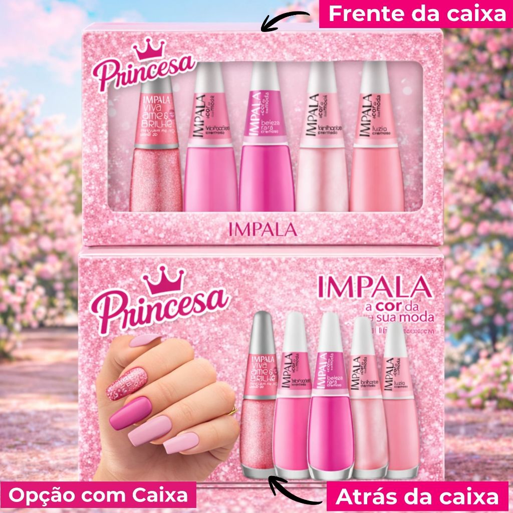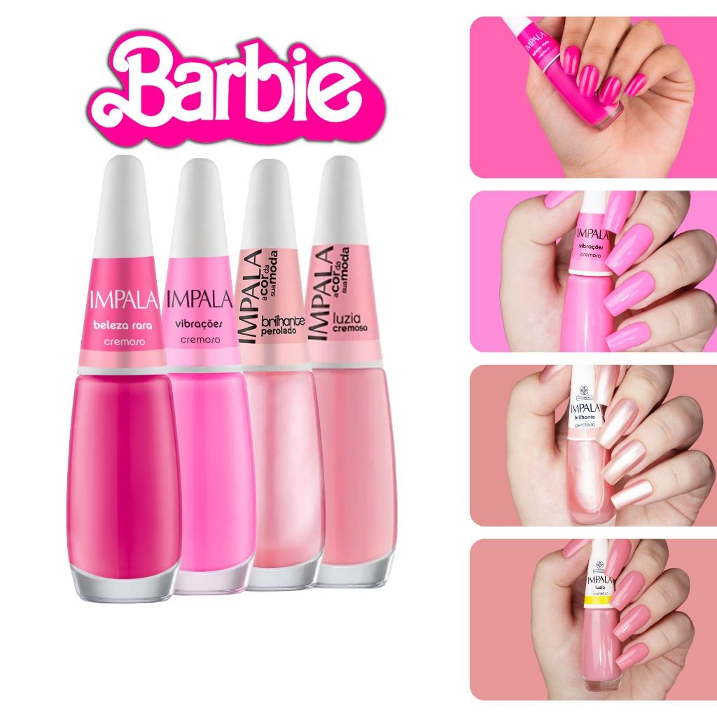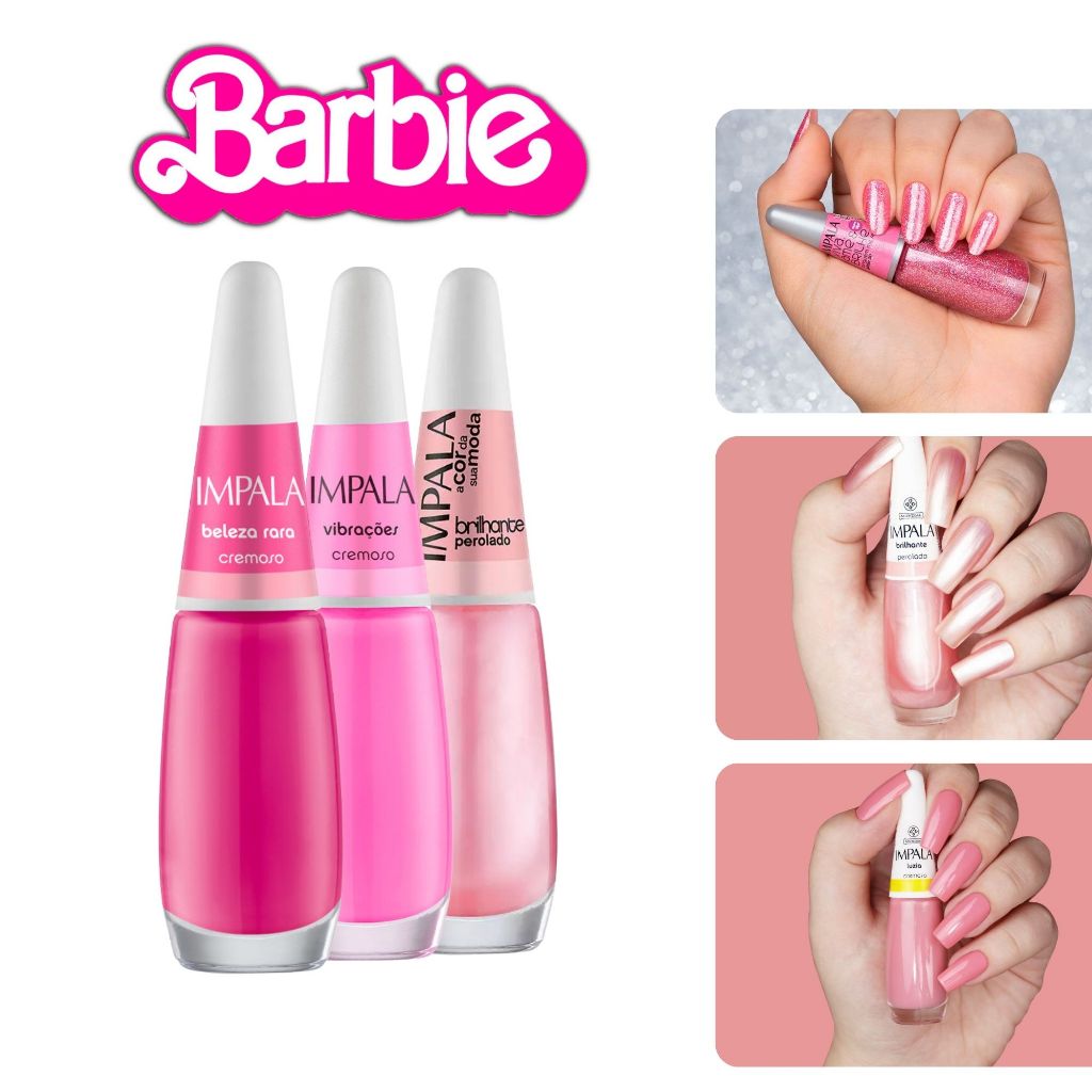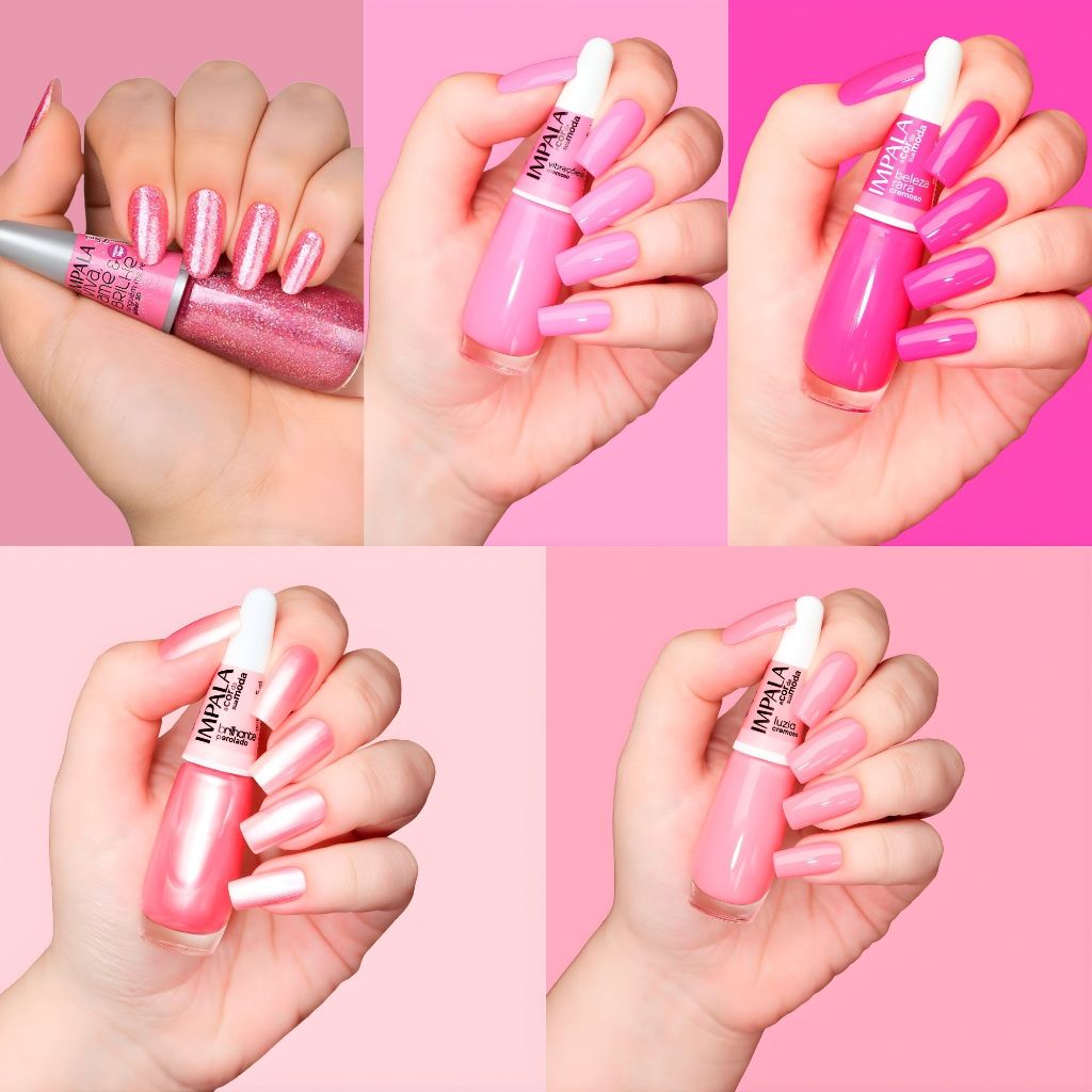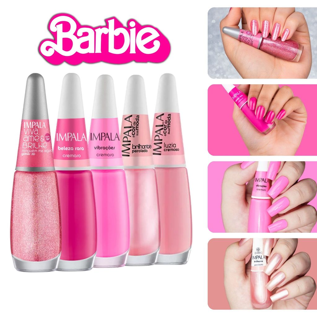 5 Esmaltes Impala Rosa Barbie Princesa Cremoso Glitter Tendência