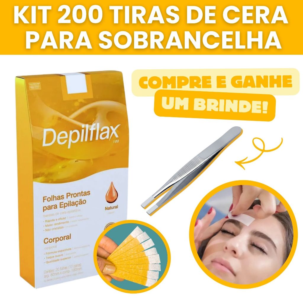 Kit 200 Tiras De Cera Pronta Sobrancelhas Buço Morango Depilflax Facial