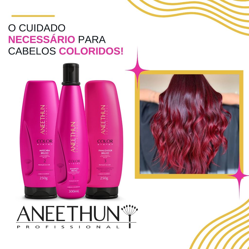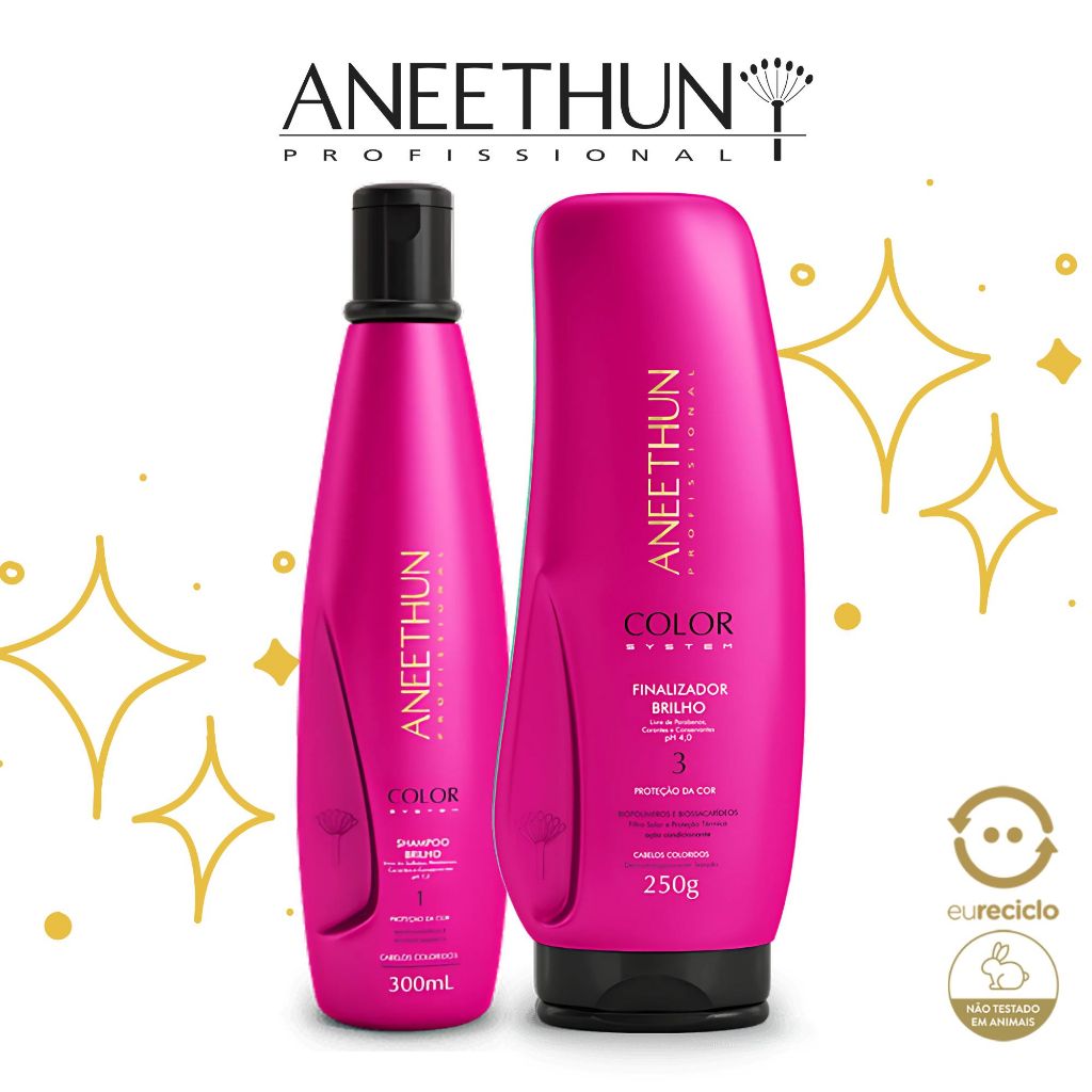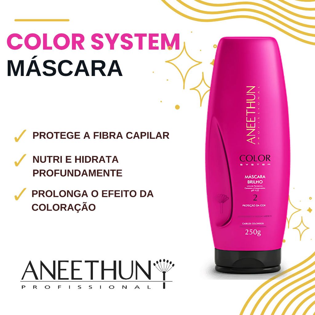Aneethun Color System Shampoo Máscara Finalizador Proteção da Cor Cabelos Coloridos Descoloridos