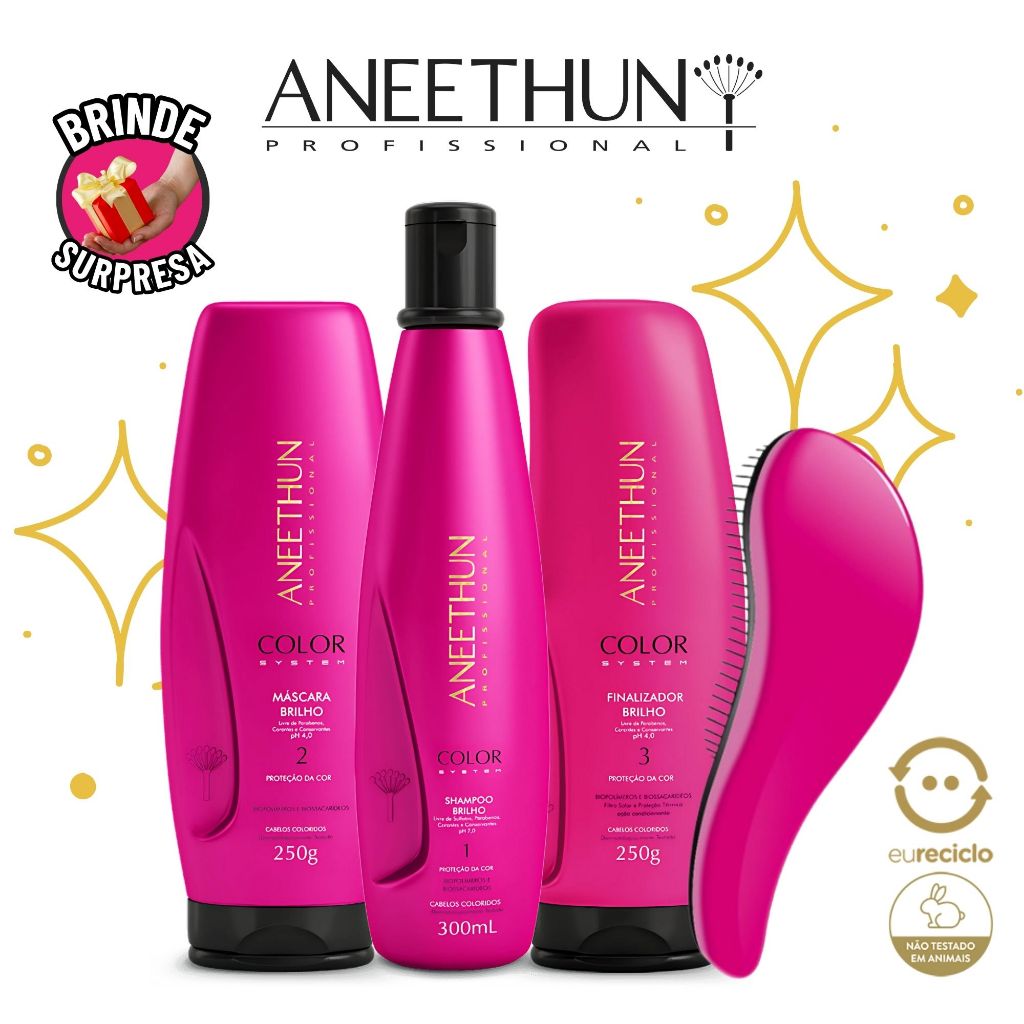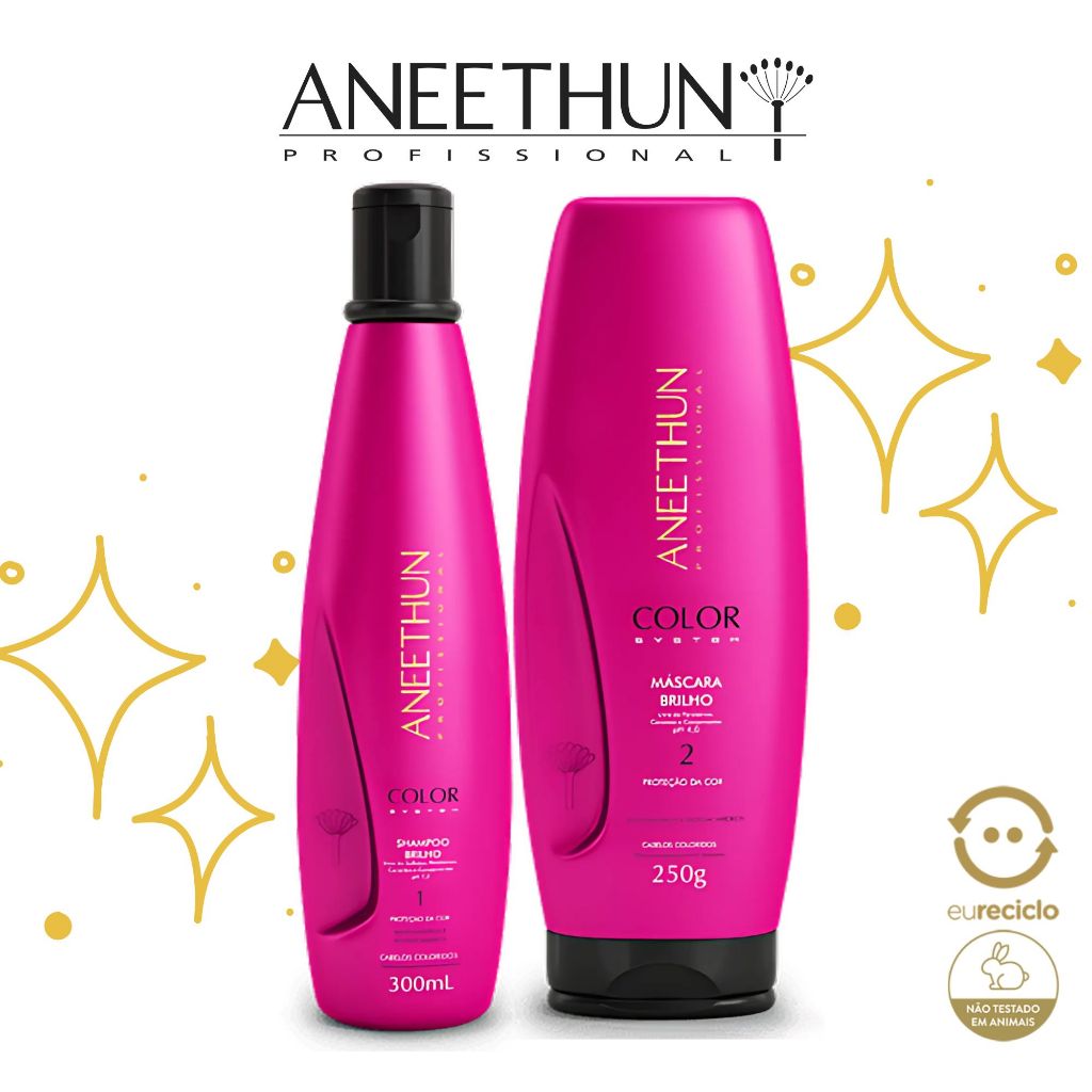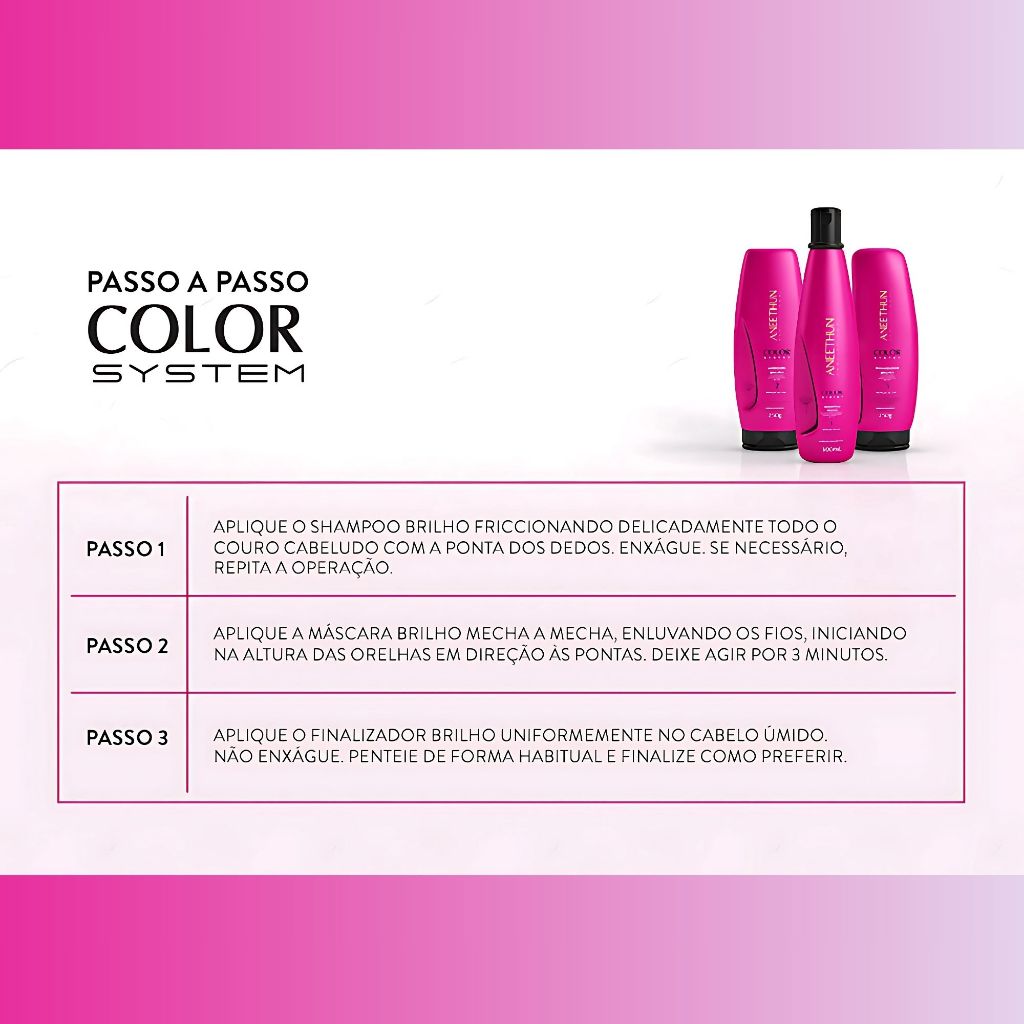 Aneethun Color System Shampoo Máscara Finalizador Proteção da Cor Cabelos Coloridos Descoloridos
