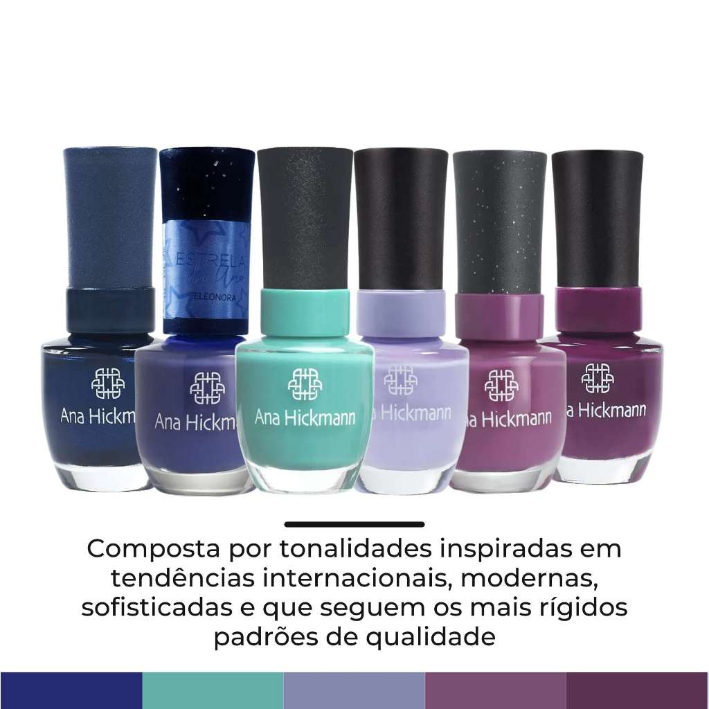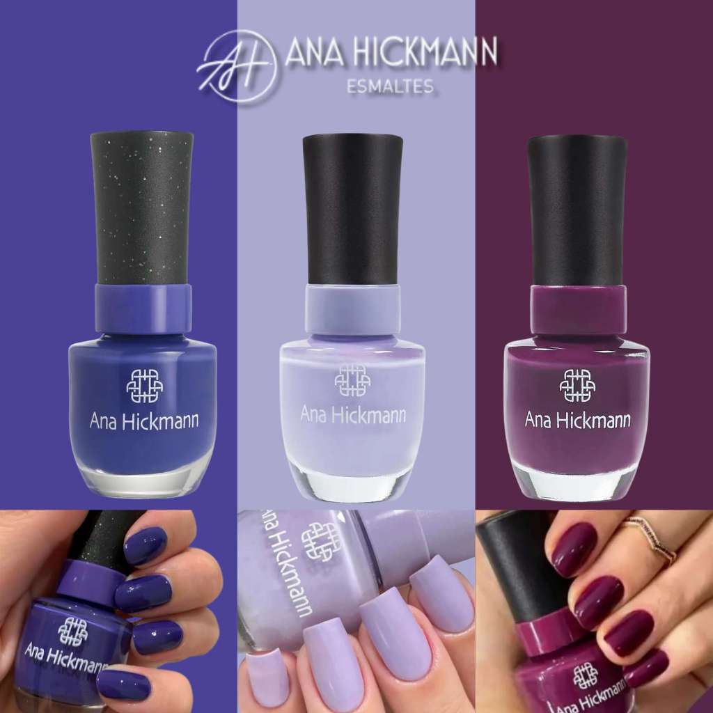 Kit Esmaltes Ana Hickmann Roxo Azul Unhas Fortes Brilho Intenso Secagem Rápida